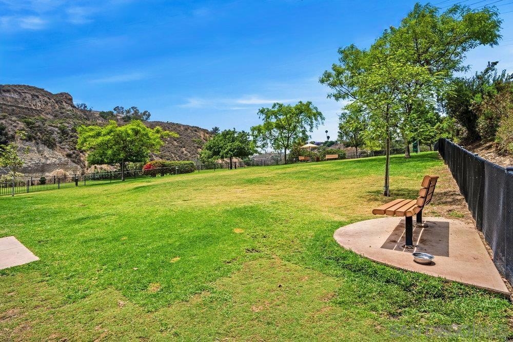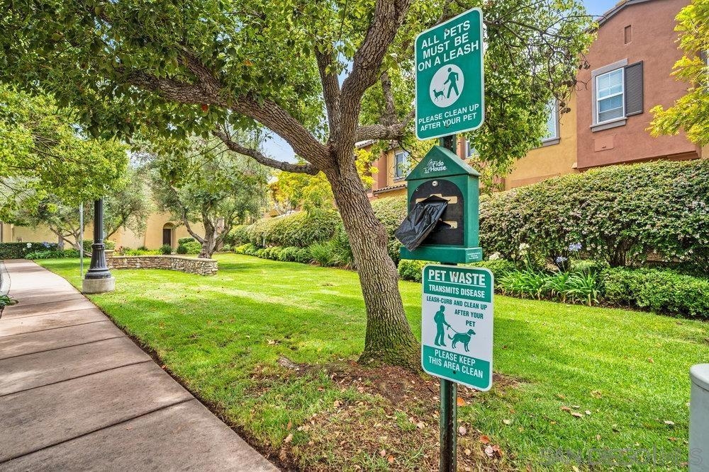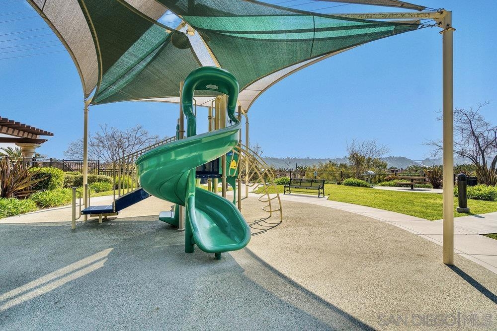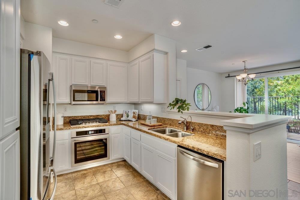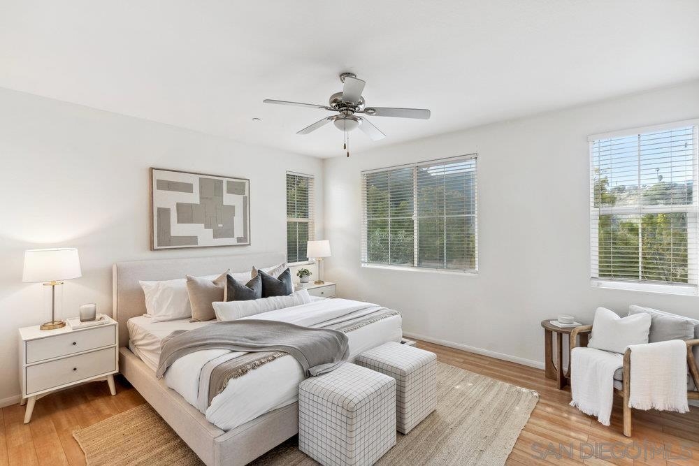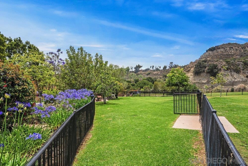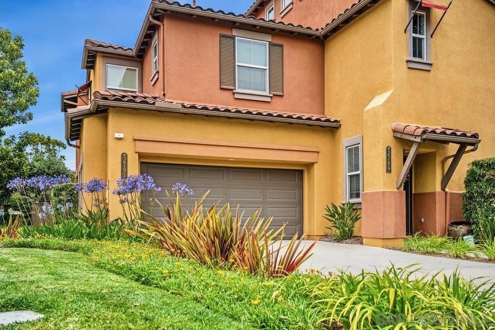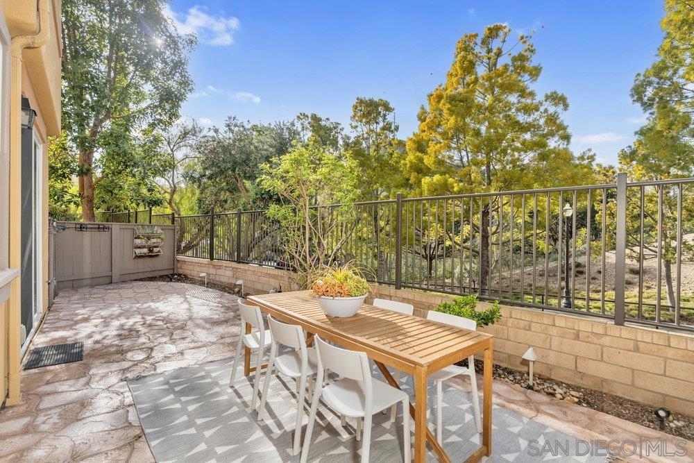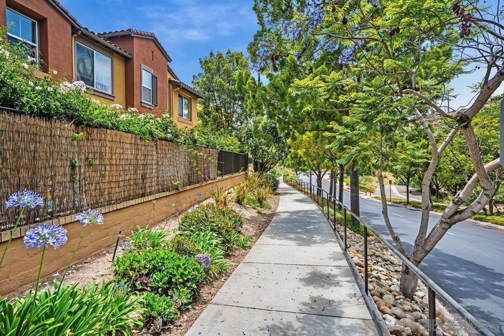 ONE OF THE BEST VALUES IN ESCALA! Welcome to Courtyards in Escala, an exclusive resort-style community where comfort, privacy, and amenities meet. This RARE corner-lot home is one of only two with a side yard and expansive back patio—perfect for outdoor entertaining. Tucked at the end of a cul-de-sac, it enjoys serene canyon and tree views with only one shared wall, mature landscaping, and the feel of a single-family home. Large west-facing windows fill the home with natural light and stunning sunsets. The attached two-car garage and extended driveway provide up to six dedicated parking spaces—an exceptional bonus. Upgrades include new kitchen appliances, new washer/dryer, updated cabinets, epoxy garage flooring, a water filtration system, backyard lighting, dimmable lights, and ceiling fans in every room. The primary suite offers a soaking tub and separate shower, plus a dedicated laundry room. The garage features built-in storage, tool racks, and mounted bike racks. Centrally located near two dog parks and the clubhouse with year-round heated pools, spa, fire pits, fitness center, BBQs, playground, and 24/7 security—plus tennis, pickleball, and basketball courts. Surrounded by nature trails, bike paths, and minutes to shopping, dining, entertainment, and the farmers market, this home delivers the ultimate San Diego lifestyle.