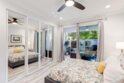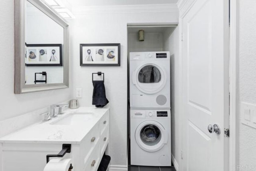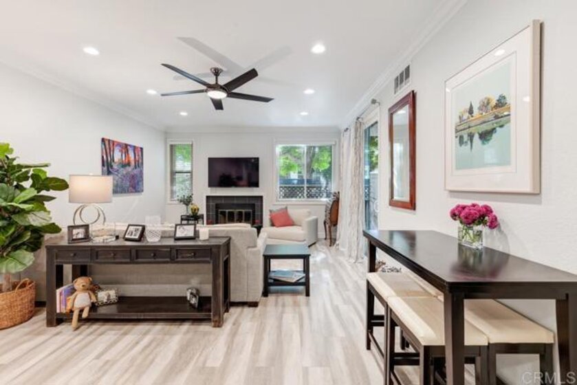 Quiet Location!!! Large 1 bed/1 bath with quiet serene patio, completely remodeled in 2018, there was no expense spared! Upgrades include Modern cabinets, laminate flooring, tile in bathrooms and kitchen, quartz countertops, upgraded dual pane windows and sliders, walk-in tiled shower with bench, crown moulding, custom built in closets with upgraded mirrored doors - unit has 2 closets including a walk in closet! Recessed lighting with dual control. Ceiling fans in both bedroom and living room. Stainless steel appliances. In unit- full size bosch stackable washer dryer. Central A/C. Tastefully painted, light and bright! Patio includes deep storage closet. Unit comes with 1 carport spot, 1 unassigned parking permit if there is a second car, 1 guest pass. Complex features include serene ponds, pool, spa, gym, greenbelt, nightly security and pet friendly!
