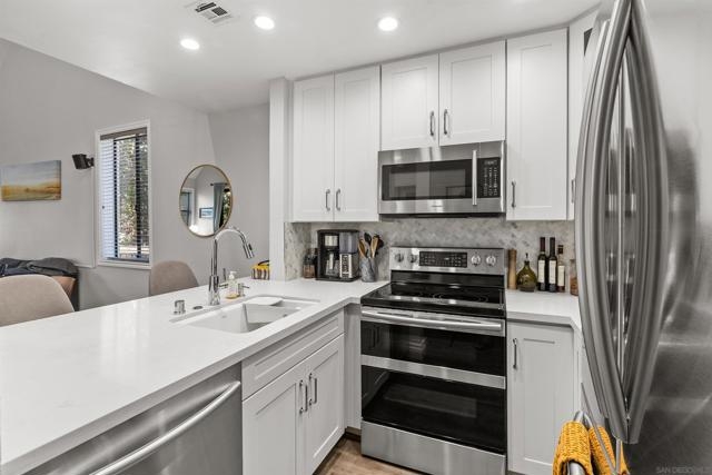 Welcome to the Creekwood condominium complex in Mission Valley, where modern living meets convenience. This beautifully updated 2-bedroom, 2-bathroom condo offers a bright and airy atmosphere, perfect for first-time buyers or those seeking a comfortable urban retreat. Step inside to find an open-concept living space filled with natural light, creating a warm and inviting ambiance. The living area flows seamlessly into the dining space and the modern kitchen, which boasts sleek countertops, contemporary cabinetry, and high-quality appliances. The spacious bedrooms are designed for comfort, each featuring ample closet space and large windows. The primary suite includes a private, full bathroom with modern fixtures and finishes, providing a serene retreat. The second full bathroom is equally well-appointed and conveniently located. This condo includes an in-unit washer and dryer, making laundry a breeze, and air conditioning for comfort during warm months. The unit’s proximity to parking adds extra convenience for daily comings and goings. The complex offers a range of amenities, including a sparkling swimming pool, relaxing spa, and beautifully landscaped common areas. Its central location in Mission Valley provides easy access to shopping, dining, and entertainment options, as well as nearby parks and recreational facilities. San Diego’s beaches, downtown area, and major freeways are only a short drive away. Experience the perfect blend of style, functionality, and location in this delightful condo. This will go FAST! Welcome to your future home in the highly sought-after Creekwood condominium complex, nestled in the vibrant Mission Valley area of San Diego. This stunning 2-bedroom, 2-bathroom condo is the epitome of modern living, boasting tasteful updates and an array of desirable features that make it the perfect choice for first-time buyers or anyone looking to experience the best of urban convenience and comfort. As you step inside, you'll immediately notice the abundance of natural light that floods the open-concept living space, creating a warm and inviting atmosphere. The living area flows seamlessly into the dining space and the beautifully updated kitchen, which features sleek countertops, contemporary cabinetry, and high-quality appliances. This is the ideal setting for both everyday living and entertaining friends and family. The two spacious bedrooms are designed with comfort in mind, each offering ample closet space and large windows that enhance the bright and airy feel of the unit. The master suite includes a private, full bathroom with modern fixtures and finishes, providing a serene retreat at the end of the day. The second full bathroom is equally well-appointed and conveniently located for guests and residents alike. One of the standout features of this condo is the in-unit washer and dryer, ensuring laundry day is a breeze. Additionally, the unit comes equipped with air conditioning, providing a cool and comfortable environment during San Diego's warm summer months. The Creekwood complex itself is meticulously maintained, offering residents access to a range of amenities, including a sparkling swimming pool, relaxing spa, and beautifully landscaped common areas. The unit's close proximity to parking adds an extra layer of convenience, making daily comings and goings effortless. Situated in the heart of Mission Valley, you'll have everything you need right at your doorstep. Enjoy easy access to a plethora of shopping, dining, and entertainment options, as well as nearby parks and recreational facilities. The central location also means you're just a short drive away from San Diego's famous beaches, downtown area, and major freeways, making commuting a breeze. This condo is more than just a place to live; it's a lifestyle. Whether you're a first-time buyer looking to enter the market or seeking a comfortable and convenient urban retreat, this home offers the perfect combination of style, functi...