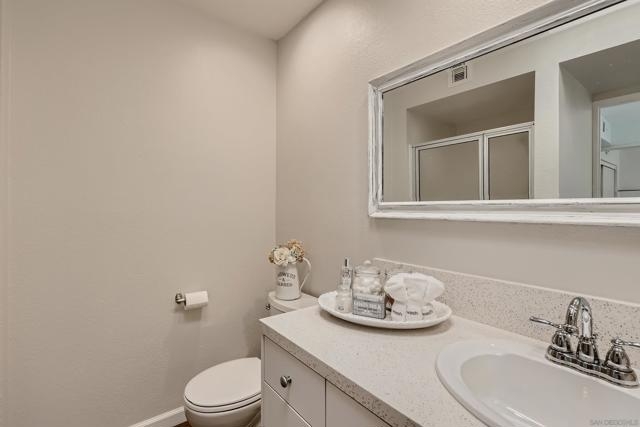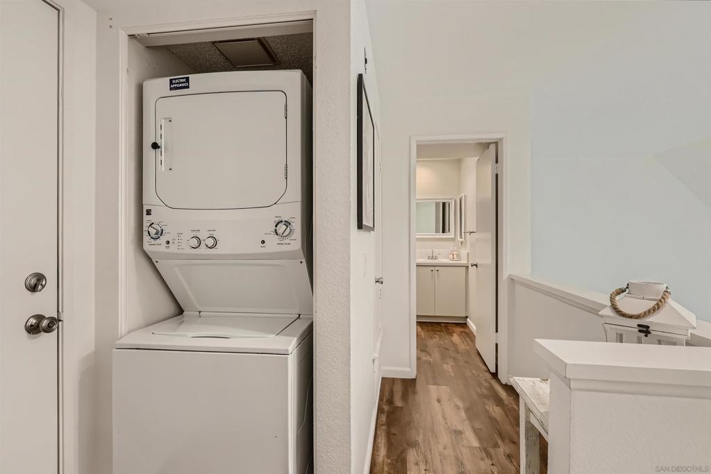 This place just feels like home! Natural light pours into this bright 2-story condo with 2 bedrooms, 2 bathrooms, vaulted ceilings, parking, a beautiful balcony, full-sized washer/dryer in unit and tons of storage! The renovations over the last 2 years were a labor of love. Upgrades include a completely renovated kitchen with stainless steel appliances, stunning cabinetry, quartz countertops, built-in wine rack and deep undermount sink. Recent renovations also include waterproof luxury vinyl plank (LVP) flooring throughout kitchen, living/dining areas & staircase, recessed lighting, GORGEOUS fireplace facade, work-from-home office nook and tiled balcony. Dishwasher hookup in kitchen to right of sink if new owner wants to add back in. Parking is 1 assigned carport + 1 permit for unassigned uncovered off-street parking spot. Master bedroom & bathroom on entry level. Guest bedroom, full guest bathroom and laundry on 2nd level of unit. Complex has community pool, hot tub and fitness room. Condo is close to Rady Children's Hospital, 8 and 805 freeways, Mission Valley Mall, Fashion Valley Mall, COSTCO and IKEA. Complex Features: ,,, Equipment: Dryer, Washer Sewer: Public Sewer Topography: LL