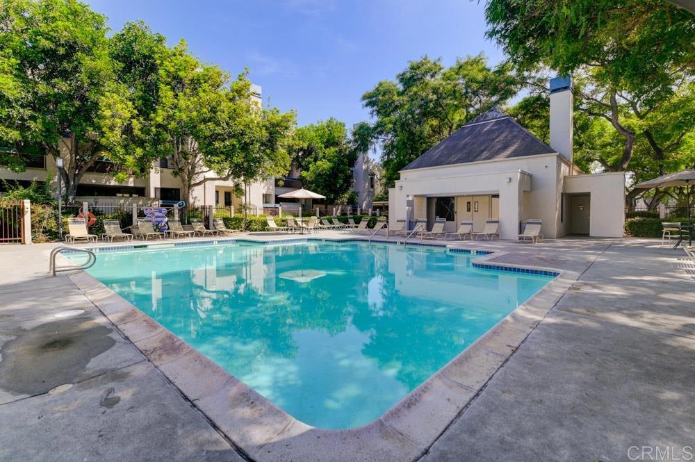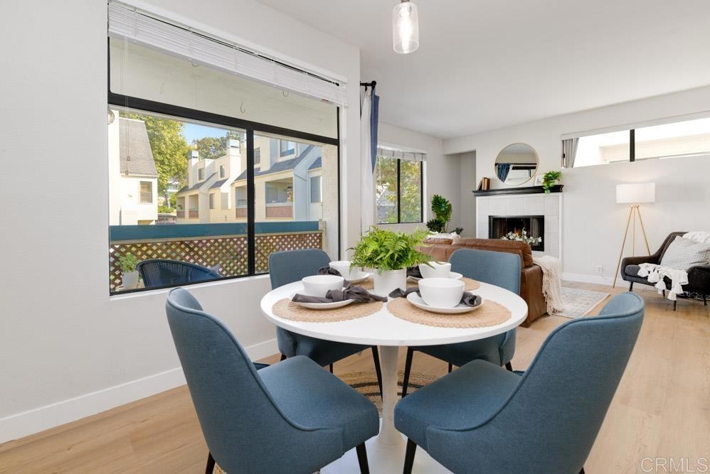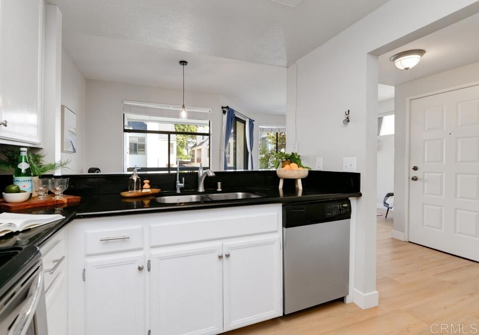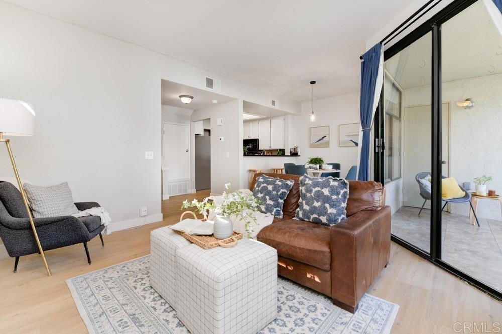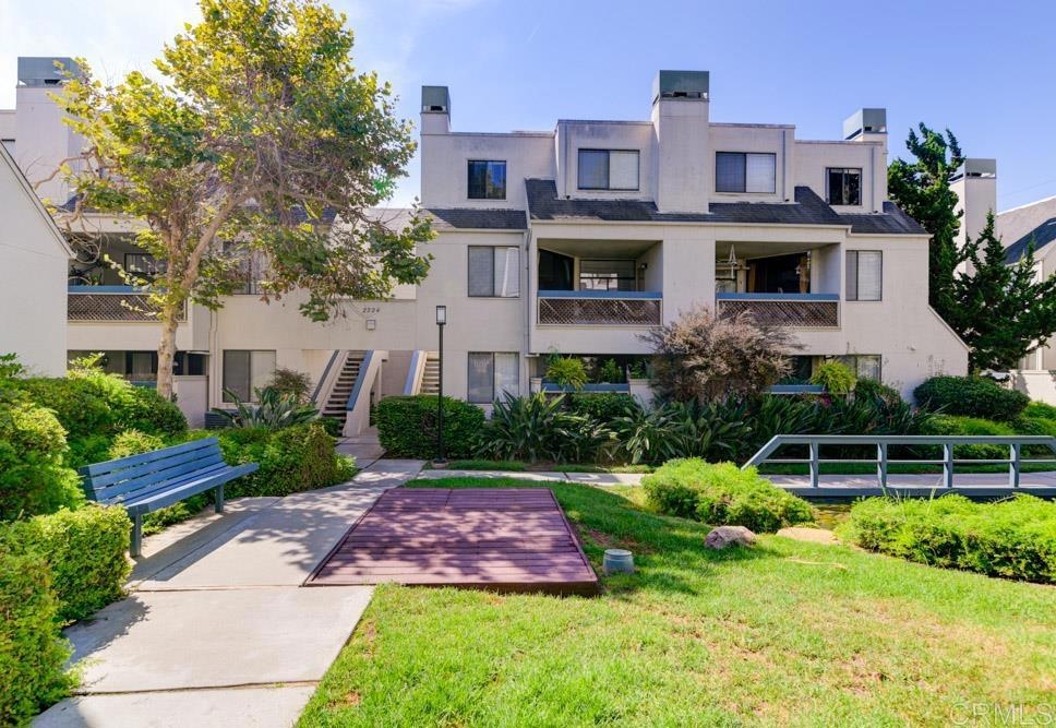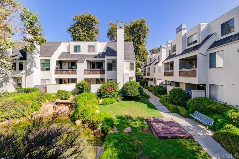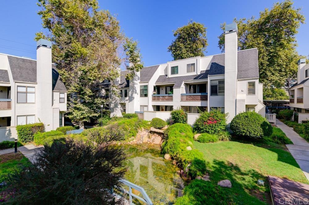 Beautifully updated VA-approved two-story townhouse-style condo in Mission Valley's Creekwood community. This home offers a bright and airy ambiance, serene views of the pond and waterfall, and is positioned in one of the most desirable locations within the complex. The lower level features brand-new luxury vinyl oak flooring throughout, an open layout with a well-appointed kitchen, spacious living and dining areas, a balcony, and a convenient in-unit washer and dryer. Upstairs, discover two bedrooms, including a primary suite with a walk-in closet, alongside an updated bathroom featuring double sinks and another private balcony. Abundant natural light streams through numerous windows and skylights. Highlights include stainless steel appliances, dedicated laundry facilities, and two parking spaces (one covered, one uncovered) with ample guest parking. The beautifully landscaped grounds feature resort-like amenities such as a pool, spa, and fitness center. Centrally located in San Diego, this home offers unparalleled convenience near Snapdragon Stadium, Costco, Ikea, Starbucks, dining options, libraries, trolley access, and premier shopping at Mission Valley and Fashion Valley Mall, all within a five-minute drive.