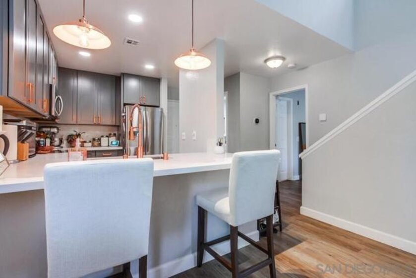 Well-maintained Townhome located in the heart of Mission Valley! Upgraded kitchen with stainless steel appliances, new cabinets, quartz countertops, and pendant lights at the island. The living room has natural light, an upgraded fireplace, high vaulted ceilings, and new luxury vinyl plank flooring. Large patio off the living room for outside dining or relaxing. Two large bedrooms and two full baths. New windows throughout. Central heat the AC with a new washer/dryer. Centrally located to all stores and easy freeway access. Well-maintained complex with treelined entrance Lots of natural light in the unit. Beautiful upgrades throughout with a brand new washer/dryer. Excellent location! Close to SDSU, USC, Fashion Valley Mall, 15 minutes from the beach.