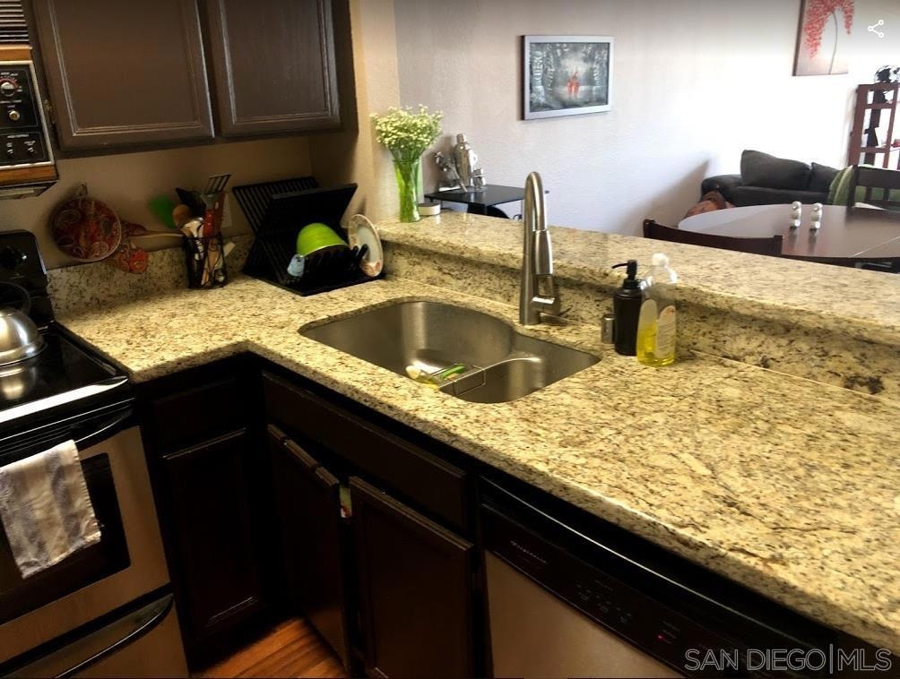 Your dream home is waiting for you in Mission Valley! High vaulted ceilings give your home that spacious and luxurious feel. Both bedrooms have a full bathroom and are located on separate floors. There are two separate entrances for privacy. Inside your unit is a set of stackable washer and dryer enclosed in a separate closet on the second floor. In 2019 Laminate flooring was installed throughout this lovely home, as well as Granite countertops in the kitchen including stainless steel appliances, and yes refrigerator stays! There is one assigned carport space and there are additional outside parking spaces available by permit. When walking around the complex, you will find yourself among shaded trees and ponds throughout. Relax and enjoy the community pool/hot tub or get a workout in the provided exercise room. Equipment: Washer Sewer: Sewer Connected
