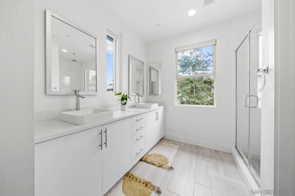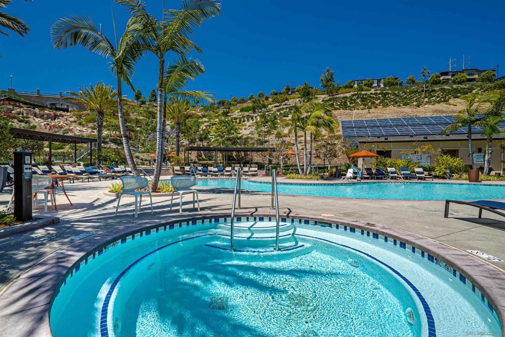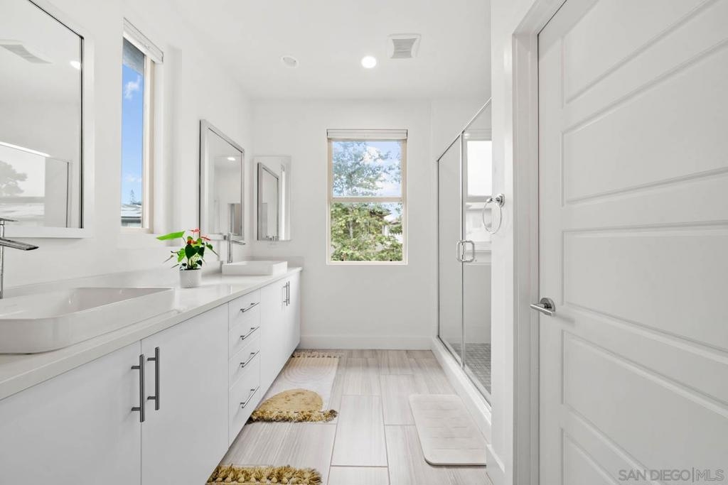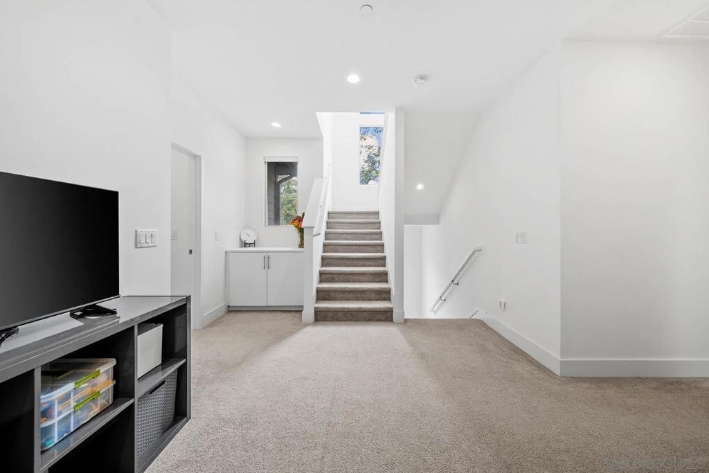 This upgraded 3 bed + loft, 2.5 bath Frame & Focus townhome delivers modern design and a prime location near a 14.3-acre park, Downtown, North Park, Kensington, Convoy District, and just minutes away from San Diego’s top schools, shopping, and beaches—this is the future of urban living. Step inside to find flat-finish walls, south-facing windows with abundant natural light, and an open layout anchored by a staircase with metal cable balusters. The chef’s kitchen features a spacious island, quartz counters and stainless appliances. For the larger rooms, the sunny primary suite offers a private balcony, walk-in closet, while the third-story loft adds flexible space for an office, gym, or lounge. The other two rooms are wonderful for kids and guests alike. Smart upgrades include dedicated EV charging, built-in wall speakers and AV routing for seamless digital entertainment, upgraded flooring, and an epoxy-coated two car attached garage. Additionally, a whole-home softening system and added water RO system downstairs ensures better water for drinking, bathing, and appliances. The fenced yard adds space for pets or grilling. Your HOA delivers unmatched value with a gym, resort-style recreation center with adult + kids’ pools, hosting space for large groups and access to a community garden. Schedule a tour today!