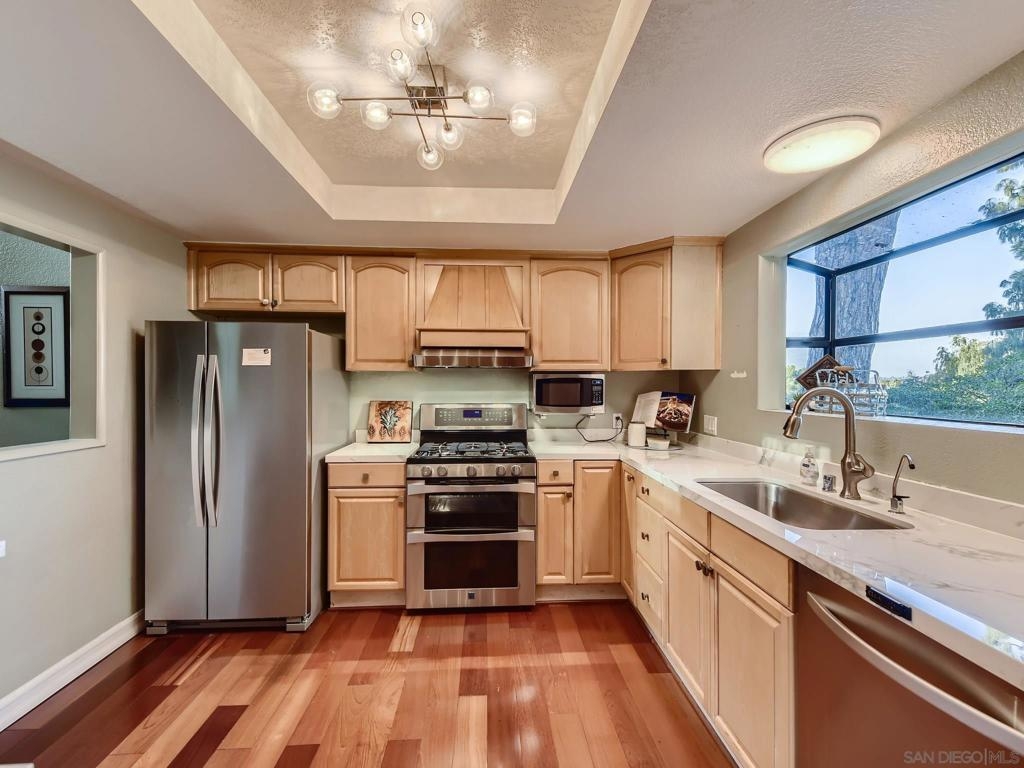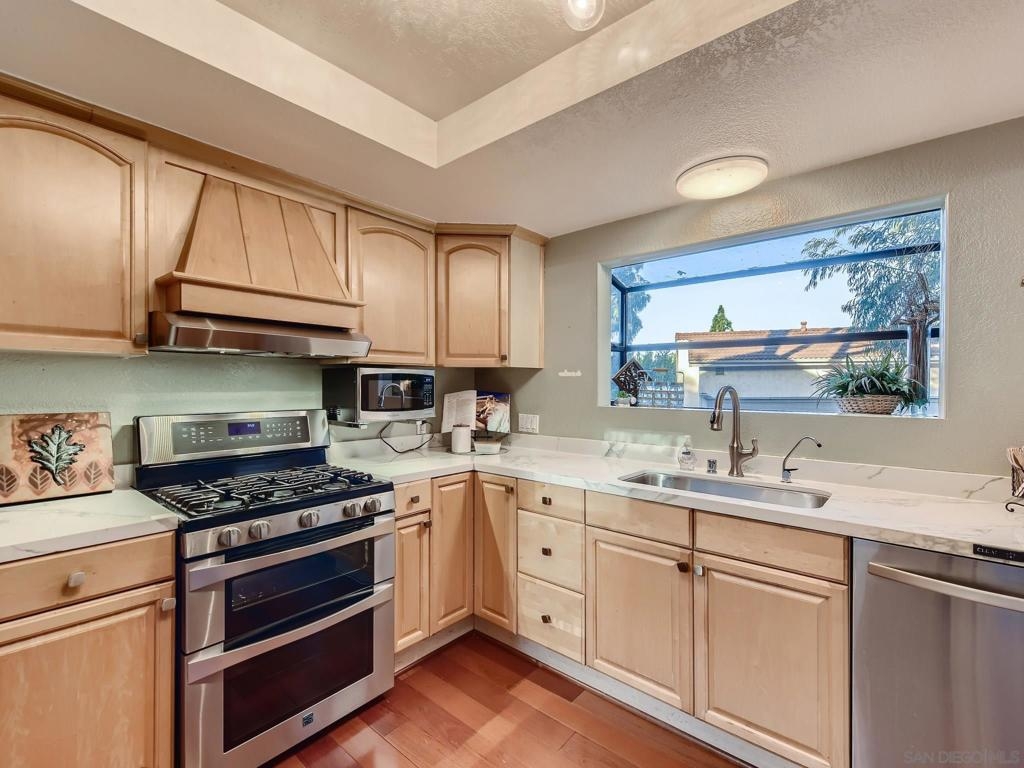Live in desirable Kensington! Lovely updated end unit. This popular “D” floor plan includes 3 beds, 2.5 baths, & a large 2-car attached garage. Plus, your own private patio & yard – a rare find for a townhome in this area! Light, bright, with vaulted ceilings & situated on a peaceful street with a park-like setting. This property is close to SDSU & all the best of San Diego living. You’ll love living close to everything Mission Valley has to offer while still being able to come home to peace & quiet. SEE SUPP. Welcome home to desirable Kensington Park Villas! Step inside this beautifully updated unit & you’ll immediately be impressed with the attention to detail & care of the current owners. Gleaming wood floors, refinished fireplace with stone surround, fresh, neutral paint, & updated light fixtures are just a few of the upgrades you’ll find inside. The vaulted ceilings add to the feeling of spaciousness. The kitchen features newer wood cabinetry, white marble counters, SS appliances, & plenty of storage. Both bedrooms are large with mirrored closet doors & lots of light. The attached garage offers plenty of room for additional storage & includes hookups for a full-sized W/D. Outside, enjoy your morning coffee or dining al fresco on your stone patio. Mature trees & landscaping lend themselves to the peaceful, park-like atmosphere. Kensington is a fantastic community tucked away near SDSU. It offers an ideal location for commuting North or South to downtown. Just a short drive, walk, or bike ride over to Normal Heights & North Park! Don’t miss this one! Equipment: Dryer,Garage Door Opener, Range/Oven, Washer Sewer: Sewer Connected Topography: GSL Frontage: Open Space