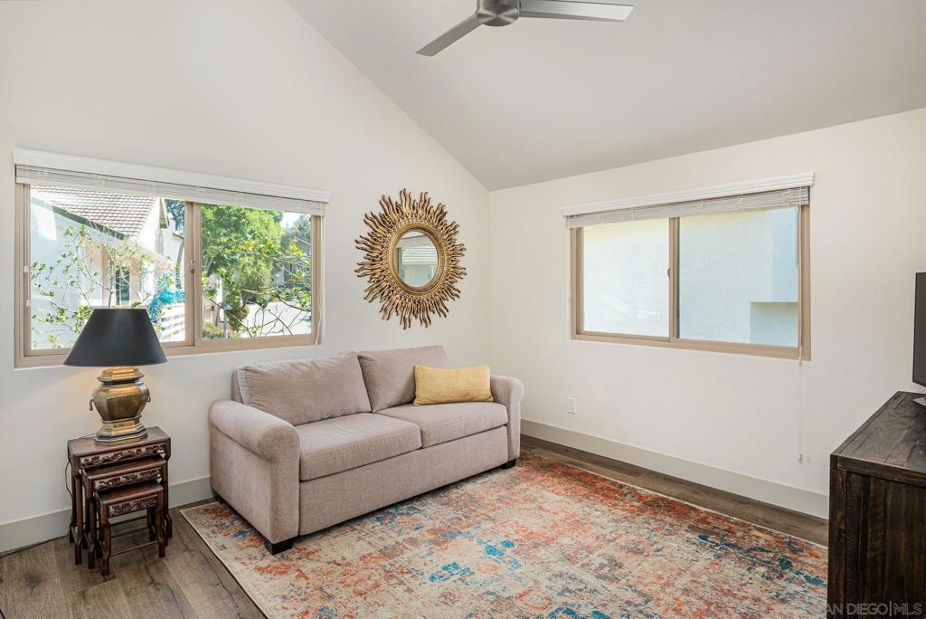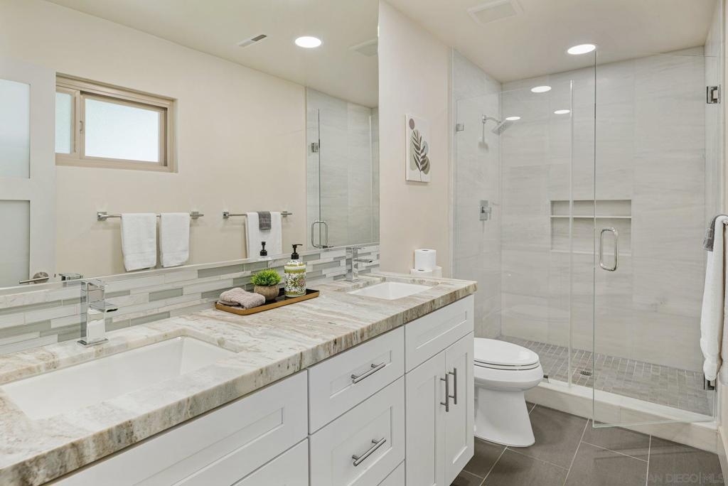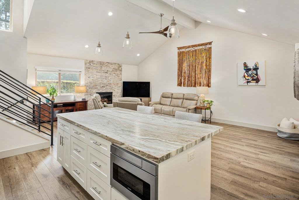 Tucked privately in the serene hills near Kensington, this exquisite home within Kensington Park Villas offers the perfect blend of tranquility and luxury. Kensington Park Villas is set within a gated community, this oasis is surrounded by nature, featuring a Koi Pond, two sparkling pools, two spas, saunas, and a clubhouse. Enjoy access to a private gate leading to the charming Village of Kensington via a walking path in the community. Beautifully remodeled, this home boasts vaulted ceilings throughout, creating an open and airy atmosphere. It includes dual-paned windows, a new HVAC system, and an expansive open-concept kitchen with a large island, leathered granite countertops, custom cabinetry and stainless steel appliances. The kitchen also features a microwave drawer and a farmhouse-style sink. For added convenience, there are upgraded electrical outlets, rocker switches, and USB ports in the kitchen. The home exudes modern elegance with recessed lighting, ceiling fans in every room, upgraded step-in showers with glass doors, inside laundry and stylish Kuna lights on the front and rear porches. Relax by the charming gas fireplace in the living room which showcases the seamless flooring that runs throughout the entire home. The backyard offers a peaceful retreat with a privacy fence and a large, extended Trex deck perfect for enjoying cool evenings. A two-car garage includes a tankless water heater and app-controlled garage door openers for ultimate convenience. Finally, there is a soft water system with reverse osmosis in kitchen sink and refrigerator. SEE SUPPLEMENT Kensington Park Villas is a planned unit development, not a condominium, with ownership held in fee simple. A fantastic location that is parklike and ideally located near I-8, I-15, and I-805, this home provides easy access to Fashion Valley, local beaches, and a quick drive downtown, making it a perfect spot to enjoy all the best San Diego has to offer.