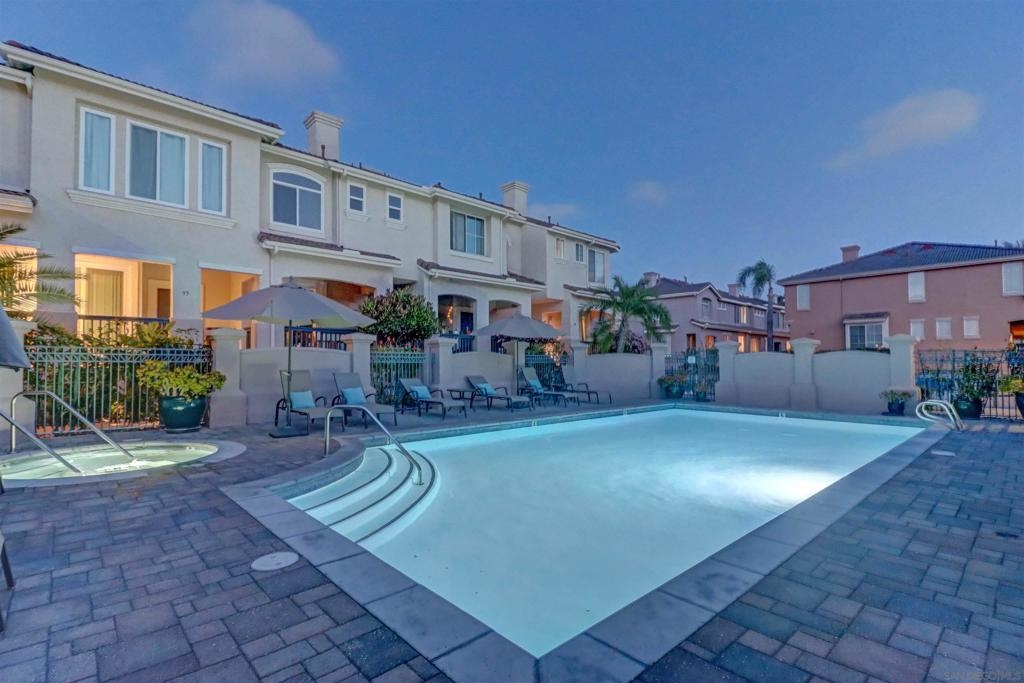 This impeccable renovated townhome is nestled in the heart of Mission Valley, offering a seamless blend of modern design and comfort within a beautifully maintained, gated community. The community itself features charming street pavers, a serene pool and spa with inviting lounge seating, and private access to the scenic Mission Valley River Trail and the San Diego River. Inside, the home boasts an array of impressive features, including Quartz Stellar White countertops, a Lupano glass subway tile backsplash, a spacious walk-in kitchen pantry, and top-of-the-line KitchenAid stainless steel appliances. Sunlight fills the home through vinyl windows adorned with plantation shutters, illuminating the warm wood flooring, built-in family room bookshelf and desk, and the stone-veneered fireplace with a self-starting log insert. Enjoy quiet moments on the private, elevated sitting porch or in the generous two-car garage, which offers additional space perfect for storage or a home gym. The recently remodeled primary bathroom is a true retreat, featuring Durango Cream Splitface shower tiling, Tuscany ivory floor tiles, a seamless glass shower with a rain shower head, raised sinks with matte black hardware, a luxurious soaking tub, and a bidet. Conveniently located near “The Valley” mall, the San Diego Trolley Station, Pacific and Ocean Beaches, downtown San Diego, and a variety of local attractions, restaurants, and coffee shops. This home offers the perfect balance of private, tranquil living and vibrant urban lifestyle.