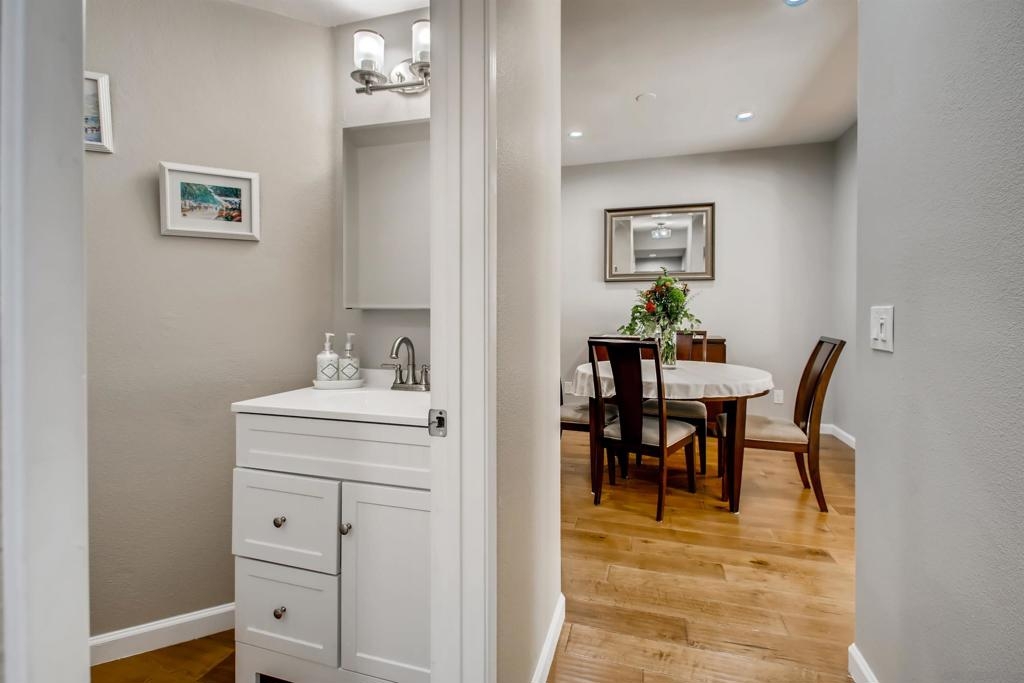 Don't miss this beautiful townhome located in a prime Mission Valley gated location. Wonderfully remodeled kitchen with upgraded appliances and pull out drawers. The home is impeccably maintained with wood floors on main level, high quality carpet upstairs, fresh interior paint, plantation shutters and recessed lighting throughout! The spacious 2 car garage has an additional tandem area for storage or gym and is Tesla ready! Perfect location for the buyer who is looking for walkability. Close to groceries, restaurants, shops, SD River trial and so much more! Sewer: Sewer Connected Topography: LL