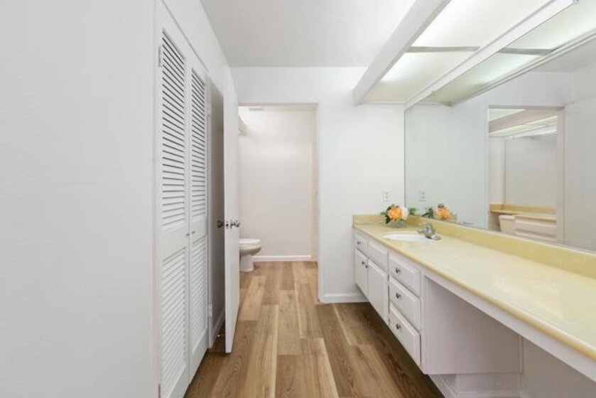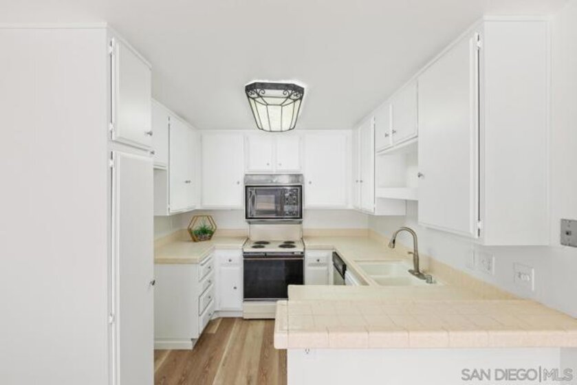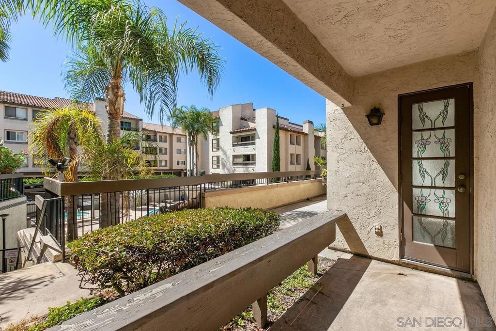 Sales price $430K. Seller gave buyers a $14,700 credit toward rate buy down plus $10K toward new AC. Welcome to Mission Greens! Just a short walk to Mission valley mall, great restaurants and the Trolley stop. Very spacious ground floor unit with no steps to the entry! Sunny and bright with Southern exposure and pool view, this condo has been freshly painted inside and new luxury flooring installed throughout. The Master BR suite is large enough to have a sitting area and/or desk plus there are three closets, and two have mirrored wardrobe doors that reflect a bright illumination in the room. The half bath and laundry closet are located near the entry. The outside patio can be accessed from both the LR and MBR and looks over the pool area. Complex Features: , Sewer: Sewer Connected Topography: LL
