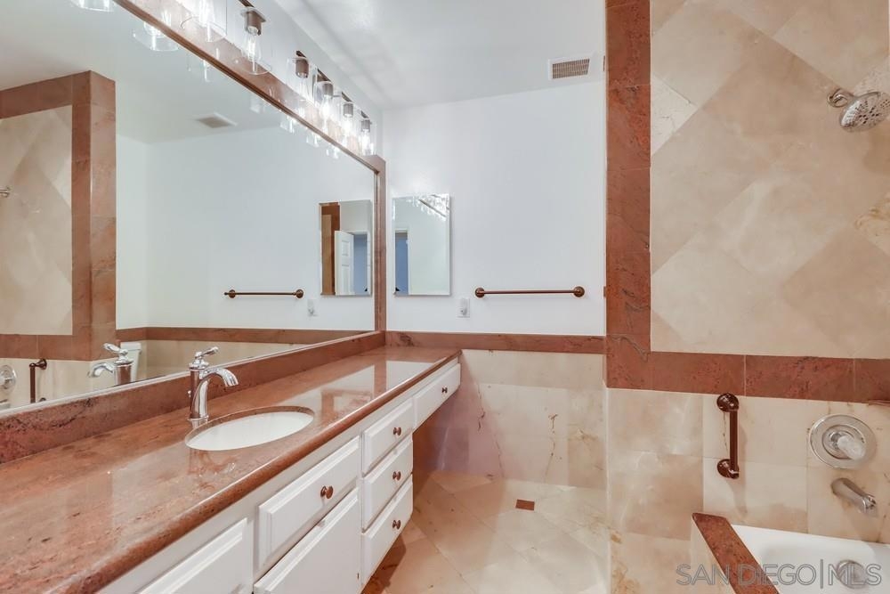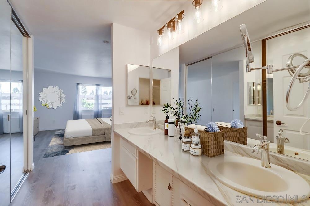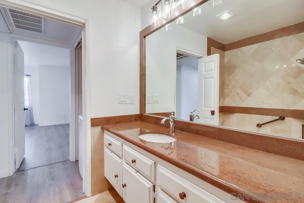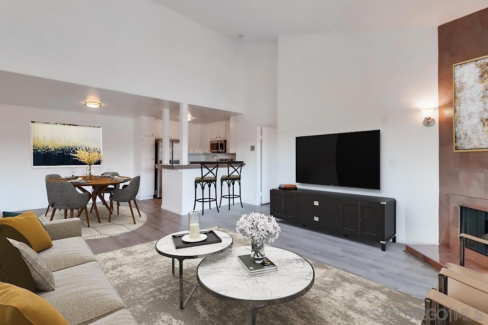 Welcome to this stunning top-floor residence in the heart of Mission Valley! This 2-bedroom, 2-bathroom home boasts an array of modern updates and luxurious features, making it the perfect urban retreat. Step inside to discover a beautifully updated interior, complete with new appliances and new forced HVAC to ensure comfort year-round. The vaulted ceilings enhance the spaciousness of the living area, while an abundance of natural light floods the space, creating a warm and inviting ambiance. The new flooring adds a touch of elegance to the home, complementing its contemporary design. The primary bedroom offers a private sanctuary with an en-suite bathroom, and the second bedroom is perfect for guests or can be utilized as a home office. In-unit washer/dryer adds convenience to your daily routine. Outside, you'll find a garage plus an additional outside parking space, providing ample parking for you and your guests. The convenient freeway access makes commuting a breeze, and you're just moments away from a variety of shopping and dining options. Centrally located, this residence offers walkable access to nearby amenities, ensuring that everything you need is within reach. Don't miss the opportunity to make this stylish Mission Valley home your own!