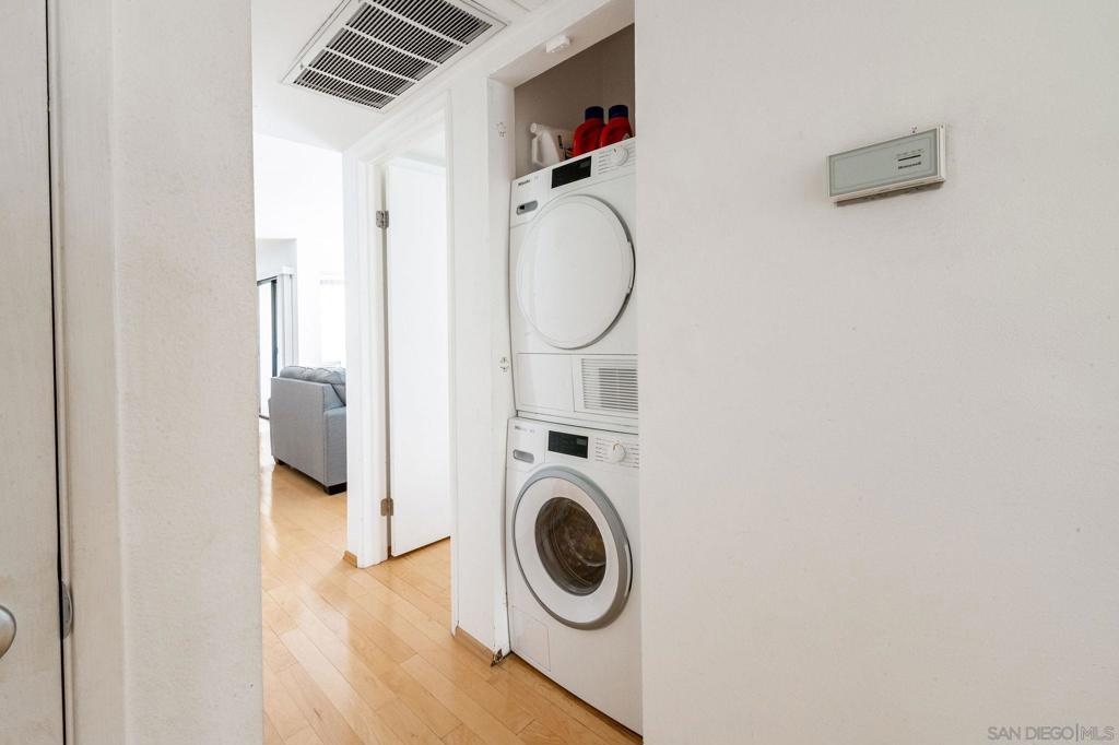 Welcome home to this VA APPROVED Mission Valley stunner! This open concept condo with tons of natural light and tall ceilings lives like a single-family home. 2 parking spots include one private garage with storage and one open parking spot that requires a parking pass. This single level, 2nd level condo has central heat and A/C, in-unit laundry and tons of storage throughout. Both the master suite and large dining/living room have balconies with beautiful views of the courtyard below with soothing water features. This community has a pool, spa, sauna and gym. HOA fees include high speed internet and HD cable, water and trash. Conveniently located near all that Mission/Fashion Valley has to offer or hop on the freeway to head to the beach a few miles away.