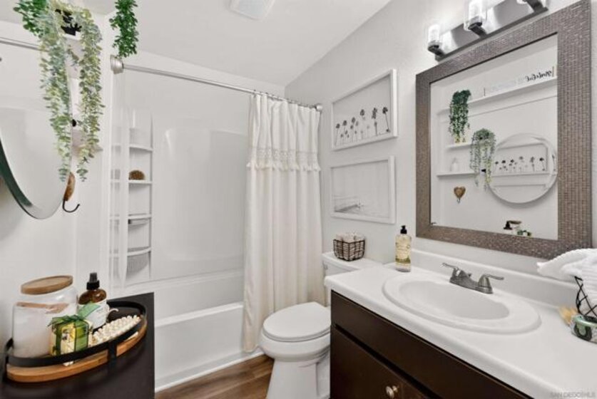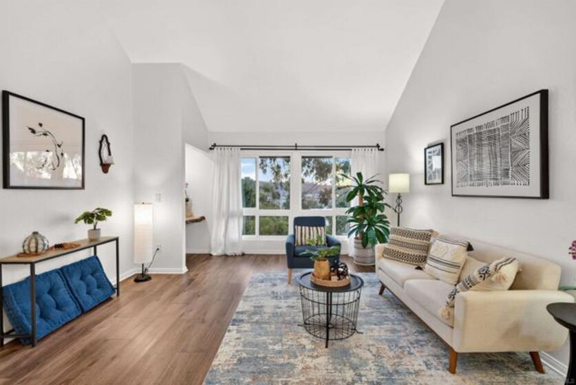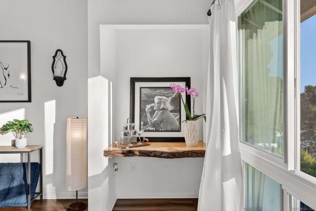 Top-floor loft-style condo with soaring vaulted ceilings and expansive valley & sunset views through newer oversized windows that fill the home with natural light. Open loft design creates a bright, airy feel. Turnkey with fresh designer paint, updated flooring, newer appliances, and quality fixtures. Loft features new double-door mirrored closets, plus an oversized mirrored closet downstairs and walk-in pantry for abundant storage. Flexible space with custom live edge wood countertop can be used as a workspace or bar. Additional features include central A/C, elevator access, and a well-maintained community with pool, spa, clubhouse, and laundry facilities. One assigned parking space. Ideally located in Mission Valley near trolley, shopping, dining, theaters, fitness centers, beaches, and major freeways. Furnishings negotiable—ideal for first-time buyers, investors, or those seeking central San Diego living. Top-floor loft-style condo with soaring vaulted ceilings, no neighbors above, and expansive valley & sunset views through newer oversized windows that flood the home with natural light. The open design creates a light-filled, airy environment that elevates the sense of space. Turnkey & recently refreshed with fresh designer interior paint, updated flooring, newer appliances, & quality fixtures. The home features new double-door mirrored closets, complemented by an oversized mirrored closet downstairs & a walk-in pantry—offering abundant & well-designed storage throughout. A versatile flex space with a custom live edge wood countertop can be configured as a workspace with existing dual monitor brackets, or reimagined as a dry bar or additional space. Additional upgrades include a Ring doorbell and keyless entry lock for added convenience and security. Enjoy central A/C, elevator access, and a well-maintained community with pool, spa, clubhouse, and laundry facilities, plus one assigned parking space. Ideally located in Mission Valley near major freeways, shopping, dining, theaters, fitness centers, beaches, and the Trolley. Turnkey opportunity with furnishings negotiable—well suited for first-time buyers or investors seeking central San Diego living.