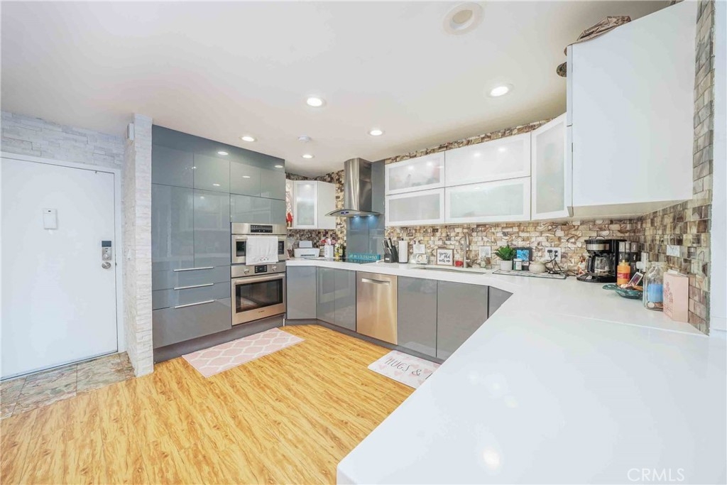 Welcome to your resort style living in the heart of San Diego! Best location and largest 1-bedroom model in Rancho Mission Villas with lots of light and garden-like views from the living room and patio. A home with plenty of character as you walk in; enjoy the elegant veneer stone wall paneling which extends throughout the entire home. This beautifully well kept and clean condo boasts a modern kitchen with Bosch induction cooktop, range hood, shaker cabinets, marble counters, and stunning tile backsplash. Enjoy the unique upgrades to the bathroom that include vanity lighting and marble tile backsplash. This home, unlike many others in the building, hosts its own washer and dryer hookups. Exquisite laminate flooring extends throughout the entire home. Also, recently added is the Fujitsu split heater and air conditioning unit. Enjoy two pools and spas, Rec Room/ Clubhouse equipped with pool and ping pong tables, exercise room, sauna, 2 tennis courts, basketball courts, and BBQ areas. The grounds are very well kept and beautiful. The unit includes one parking spot and permit-only parking spaces offer 2 additional spots. This condo is located close to shopping with 7-11, McGregor's, dry cleaners, pizza, and other stores located within walking distance. Easy access to the 8 & 15 freeway, the trolley, SDSU, and 15 minutes to the beach and downtown. Renovations to the building laundry room will include new paint, and brand-new washers and dryers completed on May 23, 2022.
