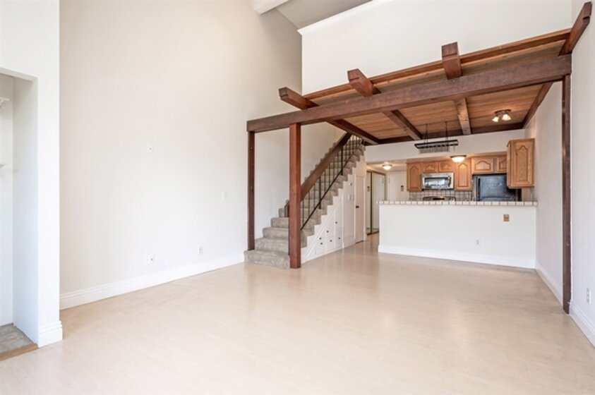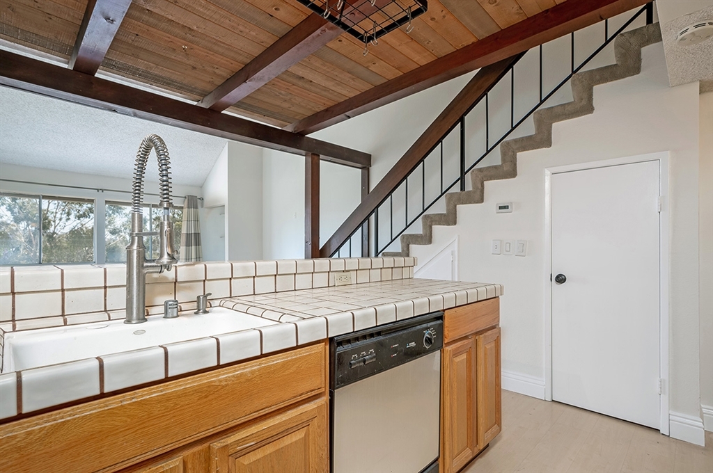 Don’t miss this bright, top floor 'loft style' home near the historic San Diego Mission! Soaring ceilings, exposed beams, and fantastic views of the valley immediately greet you upon entering the living area. Wood laminate floors, upgraded baseboards, and copious storage and closet space. The open kitchen boasts stainless microwave and stove, ample cabinet space, and eat-at bar. With new upstairs carpet, fresh paint, and stackable laundry, this condo is ready be home in centrally located Mission Valley. Listen to the chimes of California’s first Mission in this bright loft style home. Mission Heights community offers a pool, spa, and common garage parking. Mission Heights is conveniently located in Mission Valley, merely minutes from I-15, I-8, Qualcomm Stadium, trolley station and the city’s premiere shopping areas. Parking space #29. Neighborhoods: Mission Valley Complex Features: , Equipment: Dryer, Range/Oven, Washer Other Fees: 0 Sewer: Public Sewer Topography: LL