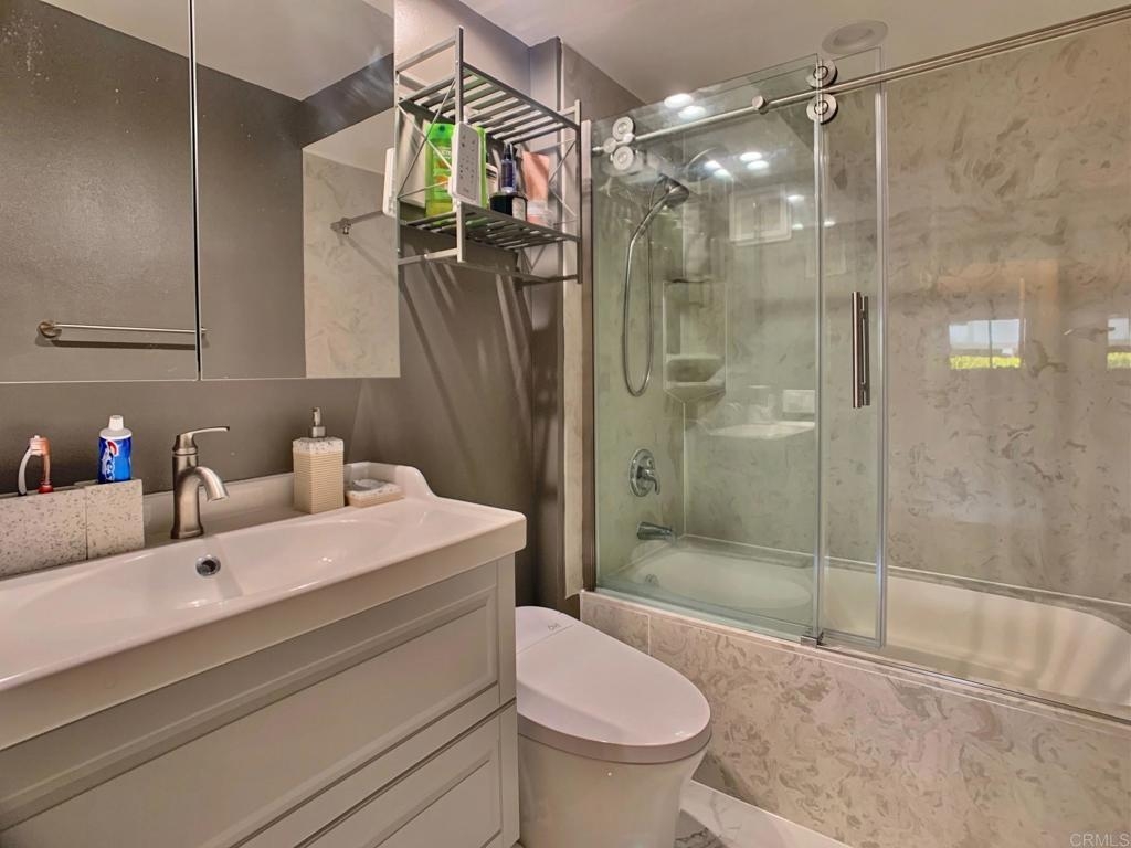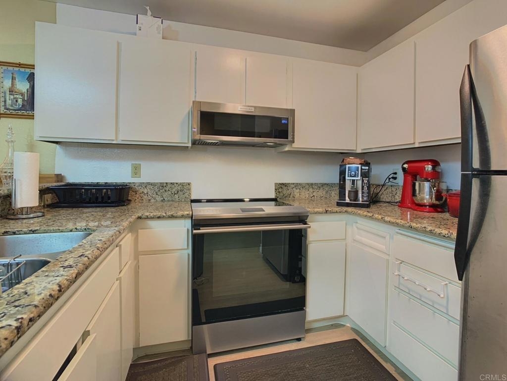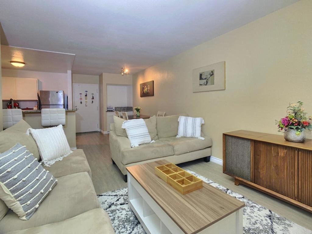 The virtual tour was filmed in HD Video (no photos) Single level ground floor unit in mission valley area, close to freeway. MANY upgrades including new vinyl /laminate flooring throughout , new range/oven, microwave, dishwasher, & refrigerator, granite kitchen counters, remodeled bath incl new toilet with heated seat!! Complex has a community pool & spa, clubhouse, bbq area & common area laundry (close to unit) All appliances convey! There is an assigned deeded uncovered parking spot close to the unit and guest parking in lot as well!