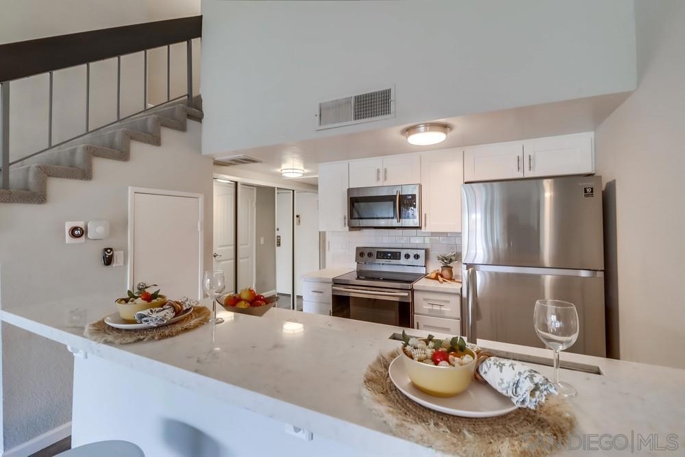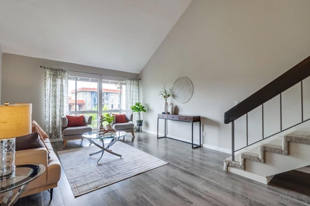 This Beautiful 1 Bed 1 Bath Condo is in like new condition. Soaring vaulted ceiling with Bedroom in the Loft. No unit above you. The Kitchen boasts newer stainless steel appliances, white shaker cabinets, quartz countertops and Large Country Style Sink.. Remodeled Bathroom. Carpet on stairs and loft with upgraded laminate floors in the lower level. HVAC was replaced in 2021. Community offers pool, spa, rec room. laundry facilities and guest parking. Great location close to Trolley Stop, Snap Dragon Stadium, SDSU, Shopping and Restaurants. Unit was totally remodeled in 2016. Don't miss this great Value. Ample Parking. This 3 Story Building has Elevator. This Beautiful 1 Bed 1 Bath Condo is in like new condition. Soaring Vaulted ceiling with Bedroom in the Loft. No unit above you. The Kitchen boasts newer stainless steel appliances, white shaker cabinets, quartz countertops and Large Country Style Sink.. Remodeled Bathroom. Carpet on stairs and loft with upgraded laminate floors in the lower level. HVAC was replaced in 2021. Community offers pool, spa, rec room. laundry facilities and guest parking. Great location close to Trolley Stop, Snap Dragon Stadium, SDSU, Shopping and Restaurants. Unit was totally remodeled in 2016. Don't miss this great Value. Ample Parking. This 3 Story Building has Elevator.