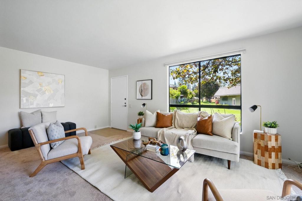 Welcome to 5923 Caminito Yucatan, a spacious and rarely available 4-bedroom, 2-bath end-unit townhome in the desirable Mission Playmor community of Mission Valley. Offering the feel of a single-family home, this two-story residence has no neighbors above or below and features a flexible layout with a full bedroom and bathroom on the ground floor—ideal for guests or a home office. Inside, you'll find a bright well-appointed kitchen with ample cabinet space. The living room opens to a large private patio that backs onto a peaceful greenbelt, creating an inviting outdoor space for entertaining or relaxing. Surrounded by mature trees and open green space, the Mission Playmor community provides a calm, park-like atmosphere while still being centrally located. Residents enjoy access to two swimming pools, spas, and tennis courts. With Snapdragon Stadium, Fashion Valley Mall, restaurants, and major freeways just minutes away, this home offers comfort, convenience, and a strong sense of community in one of San Diego’s most accessible neighborhoods.