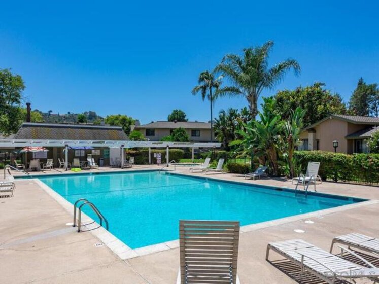 This lovely condo is located in the Mission Playmor community. It's a single-story unit with no units above or below it, and there are no steps to access it. A beautiful greenbelt surrounds the complex and features a community pool, spa, tennis court, covered parking, and walking paths throughout the community. Inside, you'll find a large living room with a slider that leads to a spacious yard overlooking a grassy area. Two bedrooms share a bathroom, and a full-size washer/dryer is available in the unit. There's also a storage closet outside. The kitchen has updated white cabinets, a new countertop, and updated appliances. The home features laminate flooring and ceramic tile in the kitchen and bathroom. The primary bedroom has a walk-in closet with built-ins. The appliances are negotiable, and they can be included in the offer. These include a refrigerator, washer/dryer, and a decorative fireplace in the living room. The owner would like to leave the entertainment center by the kitchen/table for no cost.