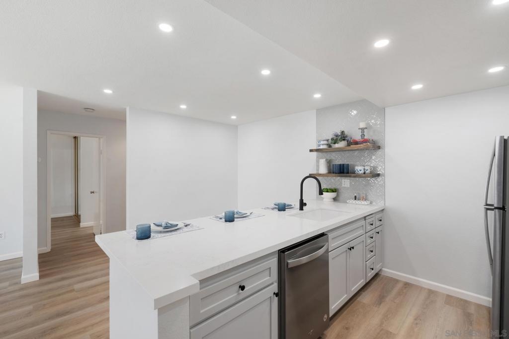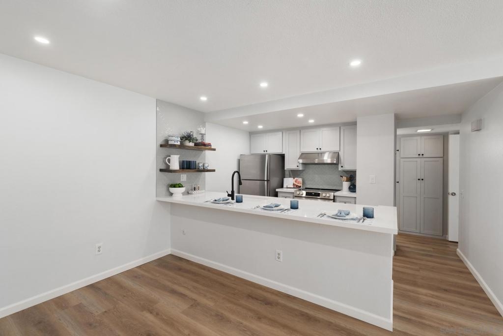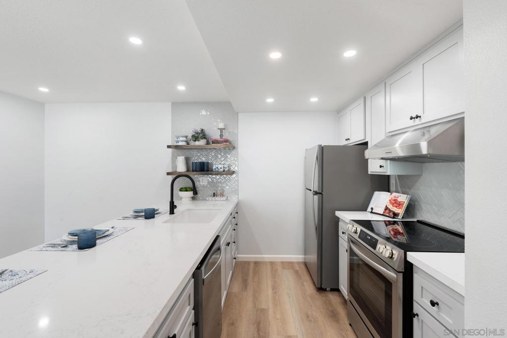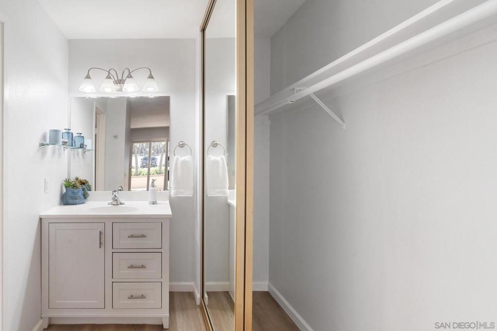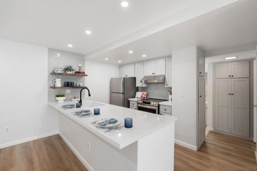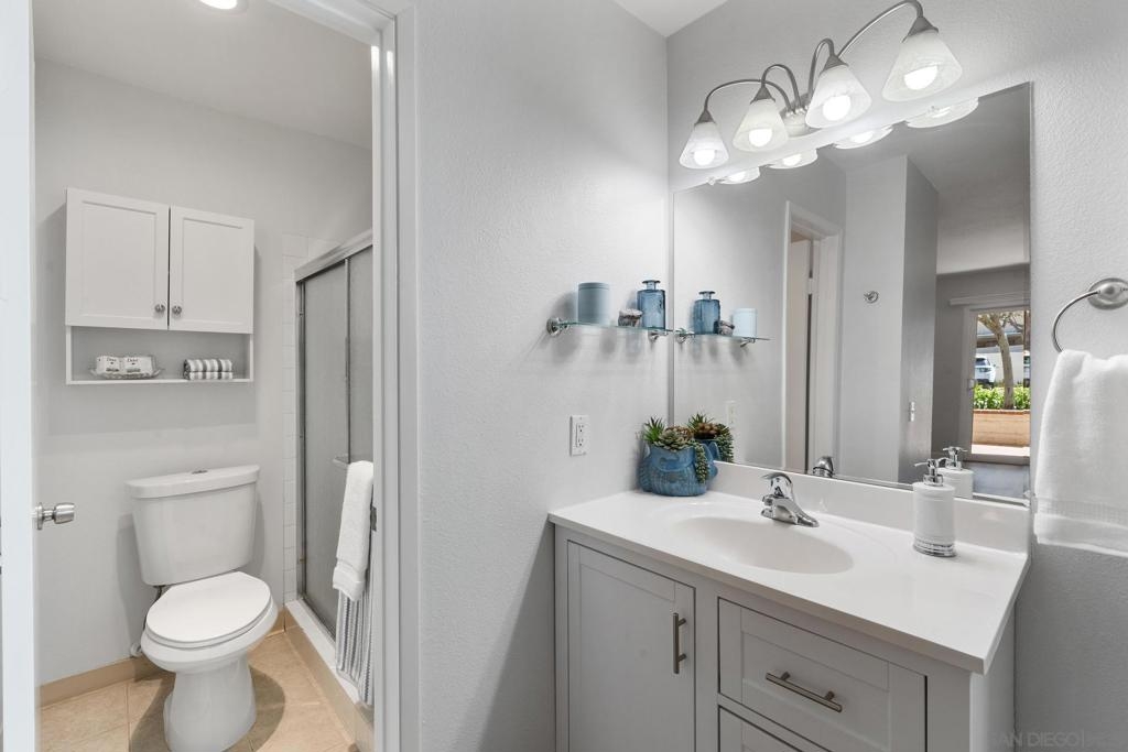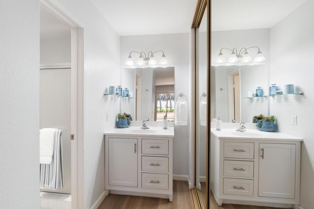 One of the larger split 2-BDR/2-Bath ensuite units in lush Mission Plaza community, measuring nearly 1,000 SF (see floorplan). Fully remodeled, southwest facing w/ private-use patio + storage. Forced Air Heat & Central A/C. Two dedicated parking spaces w/in steps for convenience & security (#s 240 & 241) + 2 unassigned permits + ample guest parking. Laundry Room, Gym, 1 of 3 Pools, Spa, Tennis Courts, BBQs located w/in steps (see Site Plan). Designed organically in whites & soft greys. Easy to see w/in 30-min! Listing agt is 1 of 4 LLC owners.