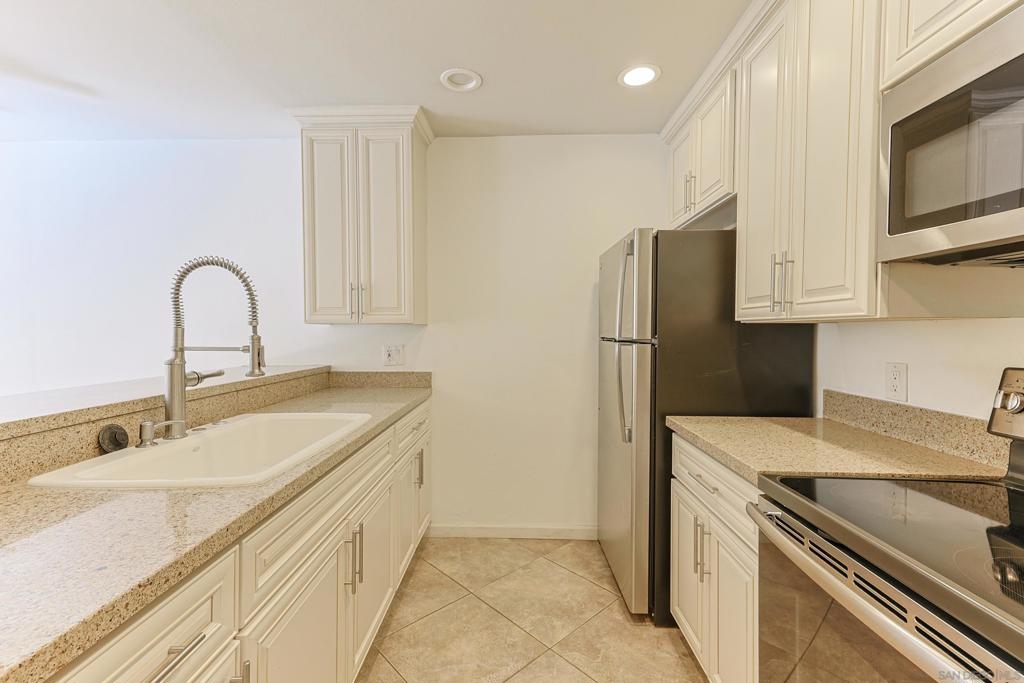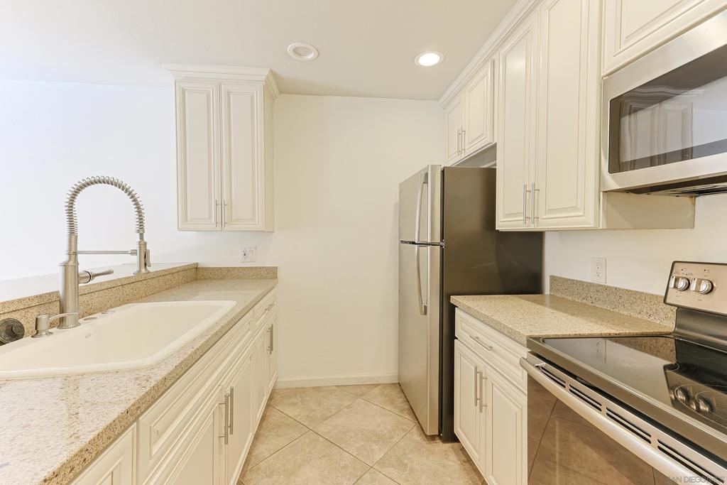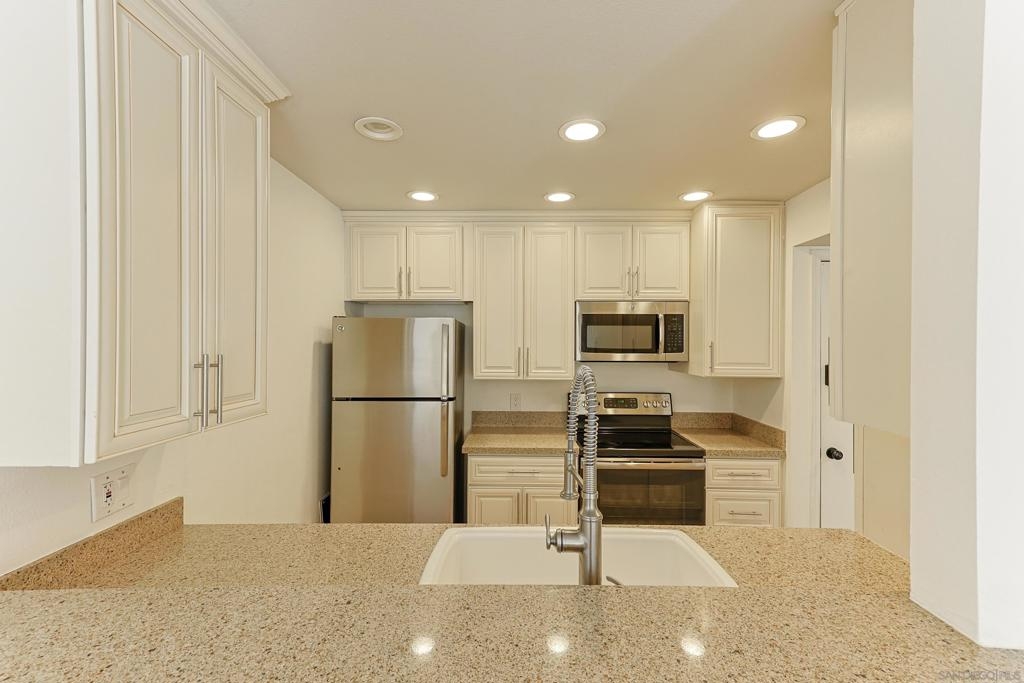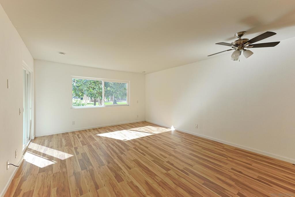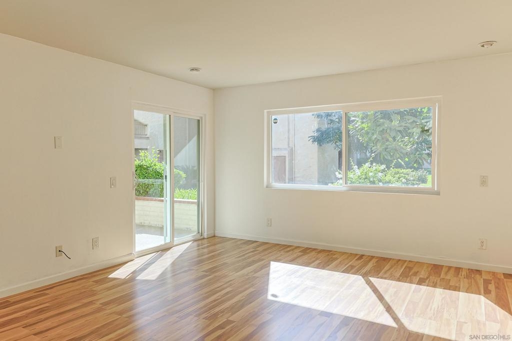 Welcome to the VA approved Mission Plaza community nestled in the heart of Mission Valley with beautiful park-like views! This ground floor end-unit condominium is quiet, bright, and inviting! The floorplan features an open living and dining room combo space with a slider door leading to a covered patio area. This condo comes with an efficiently organized galley kitchen, an upgraded bathroom, laminate flooring, forced heating and air, large bedroom closet space, and so much more! The Mission Plaza complex has many amenities including pools, a spa, tennis courts, picnic and BBQ space, and beyond! Close to shopping, restaurants, freeways access, local services, and Snapdragon Stadium - this is your opportunity to launch your new chapter!