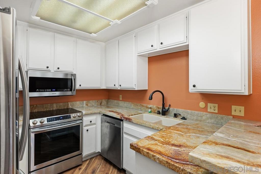 Introducing the perfect 1 bed, 2 bath home located in the highly sought-after Mission Ridge Condo Complex. With a range of amenities and recent improvements, this is the ideal place to call home. Enjoy the luxury of the largest pool in Mission Valley and 2 tennis courts. Inside the condo, enjoy the elegance of granite counters, stainless-steel appliances, a cozy fireplace, laundry hookups, and French doors leading to an enclosed balcony. Don't miss out on this incredible opportunity for comfortable and convenient living. VA/FHA Approved! Introducing the perfect 1 bed, 2 bath home located in the highly sought-after Mission Ridge Condo Complex. With a range of amenities and recent improvements, this is the ideal place to call home. Enjoy the luxury of the largest pool in Mission Valley and 2 tennis courts. Inside the condo, enjoy granite counters, stainless-steel appliances, a cozy fireplace, laundry hookups, and French doors leading to an enclosed balcony. You'll have one assigned covered parking spot and an additional uncovered spot if you have 2 cars. The complex has undergone resurfaced streets and new exterior painting, with the added convenience of Amazon secure delivery cubbies currently being installed. The meticulously maintained grounds feature trimmed trees, ample guest parking, and no special assessments. Close proximity to shopping, Snapdragon Stadium, and the trolley make this location unbeatable. On-site amenities include a gym, rec room, and the added bonus of water, gas, and trash paid by HOA. Don't miss out on this incredible opportunity for comfortable and convenient living.