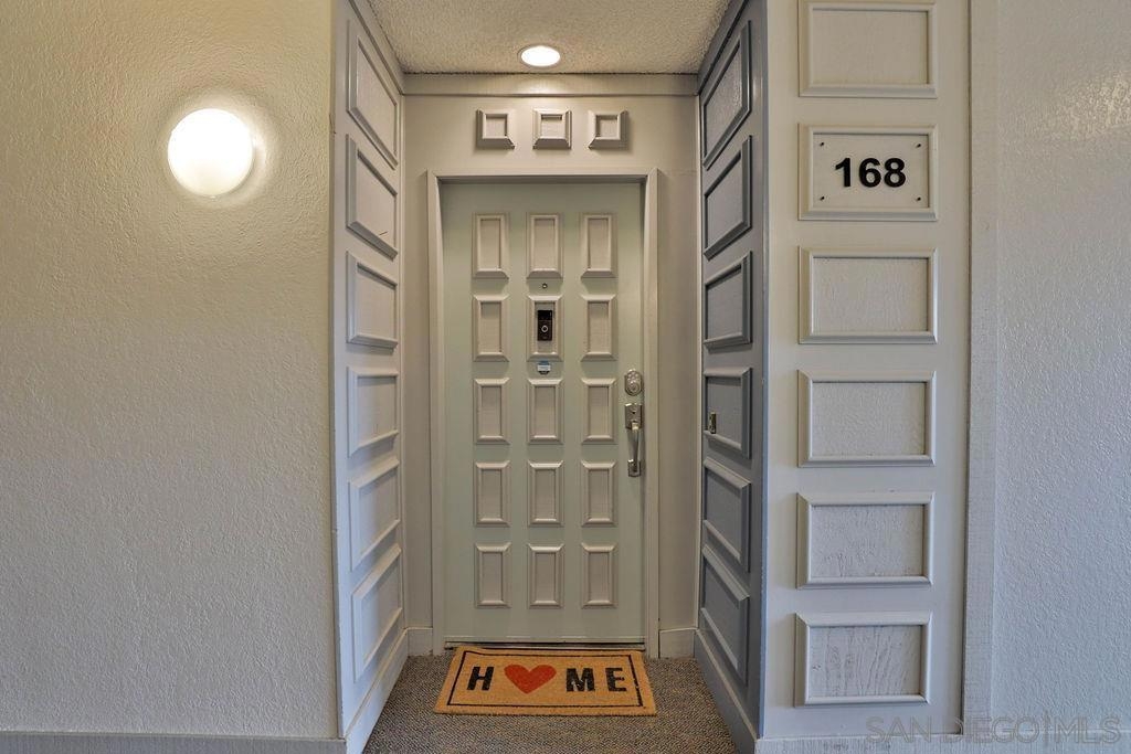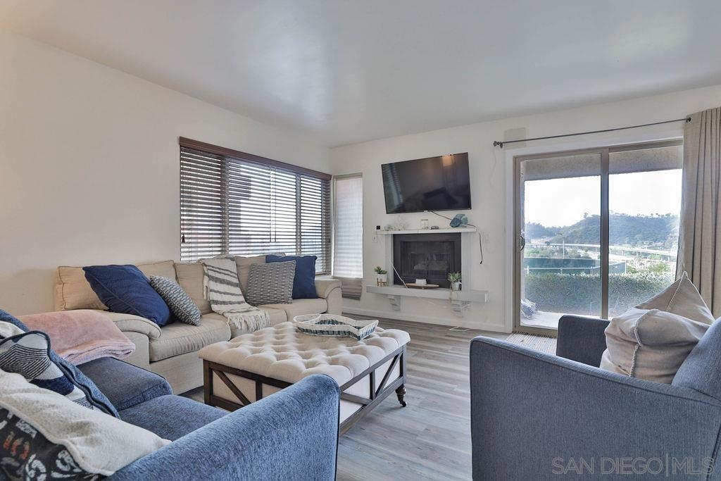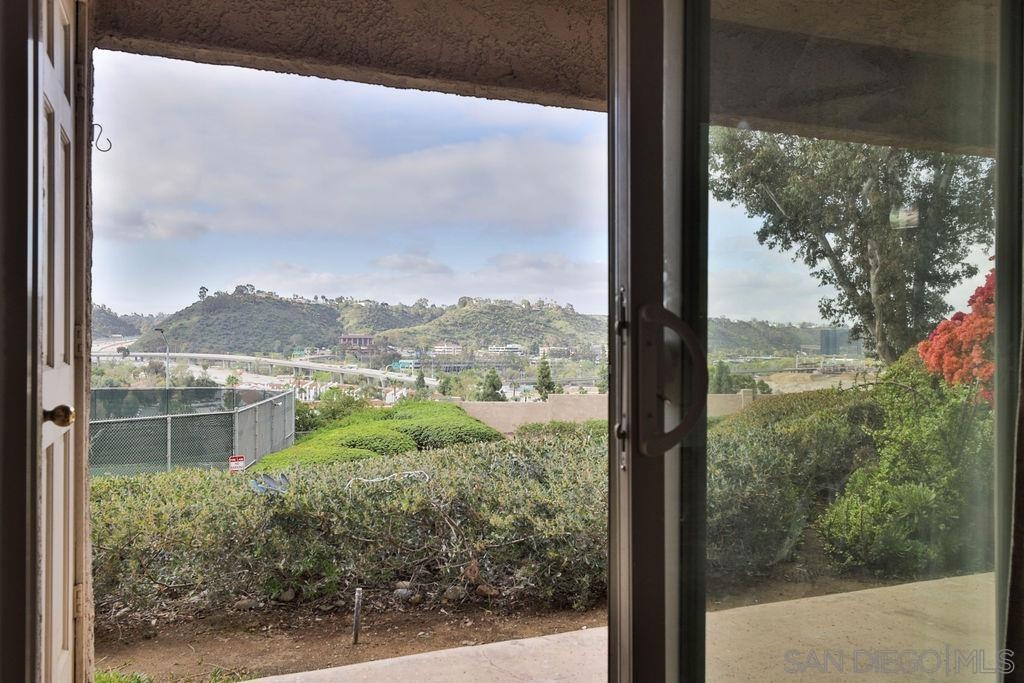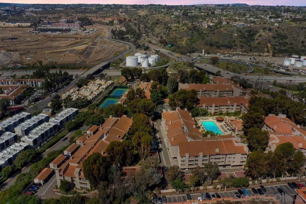 LOCATION LOCATION - Stunning & Stylish Corner Unit nestled privately in Mission Valley with beautiful sunset views! Located near all major San Diego hot spots. Great complex location, condo #168 is on the first floor – an end unit with easy access by elevator or stairs. The open floor plan feels spacious with natural soft lighting giving a cozy feel. Living area has a spectacular private view of highway 8 /15 interchange & the new stadium with grounds surrounded by grand eucalyptus trees. Completely renovated & fully upgraded, ceiling to floor, 6 months ago with NEW stainless-steel appliances, Belmont 1300 quality kitchen cabinets with 2 Lazy-Susan turntables, stunning Alaska quartz countertops, imported floor tiles from Spain, Mexico, and Turkey. USB electrical outlets & dimmers & 3 installed flat screen TV's! Gorgeous blue gray toned faux wood waterproof vinyl plank flooring & fresh paint throughout. Popcorn ceiling was safely removed. A bar area with a new wine fridge & plenty of storage for your everyday items. Master suite includes double sink vanity, versatile walk-in closet, and additional closet with vertical cloth blinds. Trendy barn door encloses second bedroom just off of the living area. Washer/dryer combo in unit; however, laundry room is conveniently located right next door. Low HOA’s include hot water, insurance, trash, water AND the community offers a lot of amenities; lap pool/jacuzzi, tennis, and racquetball courts, men’s & women’s saunas, Rec Room/Club house, a gym, and beautiful walking paths with overnight security patrolling the neighborhood. Complex Features: ,,,,,, Sewer: Public Sewer Topography: GSL