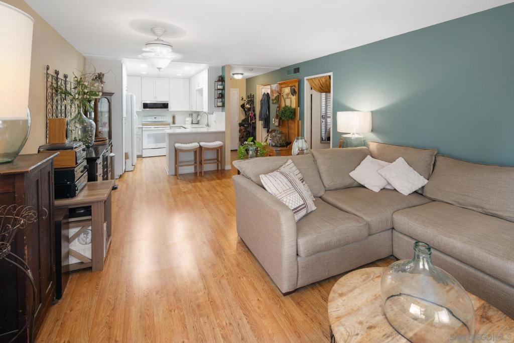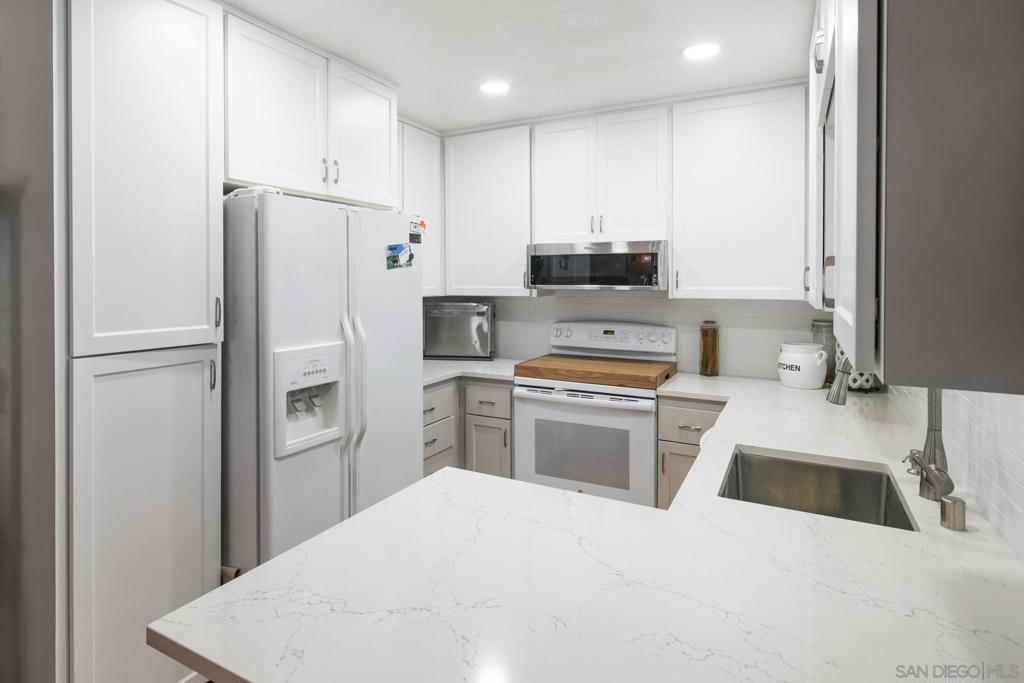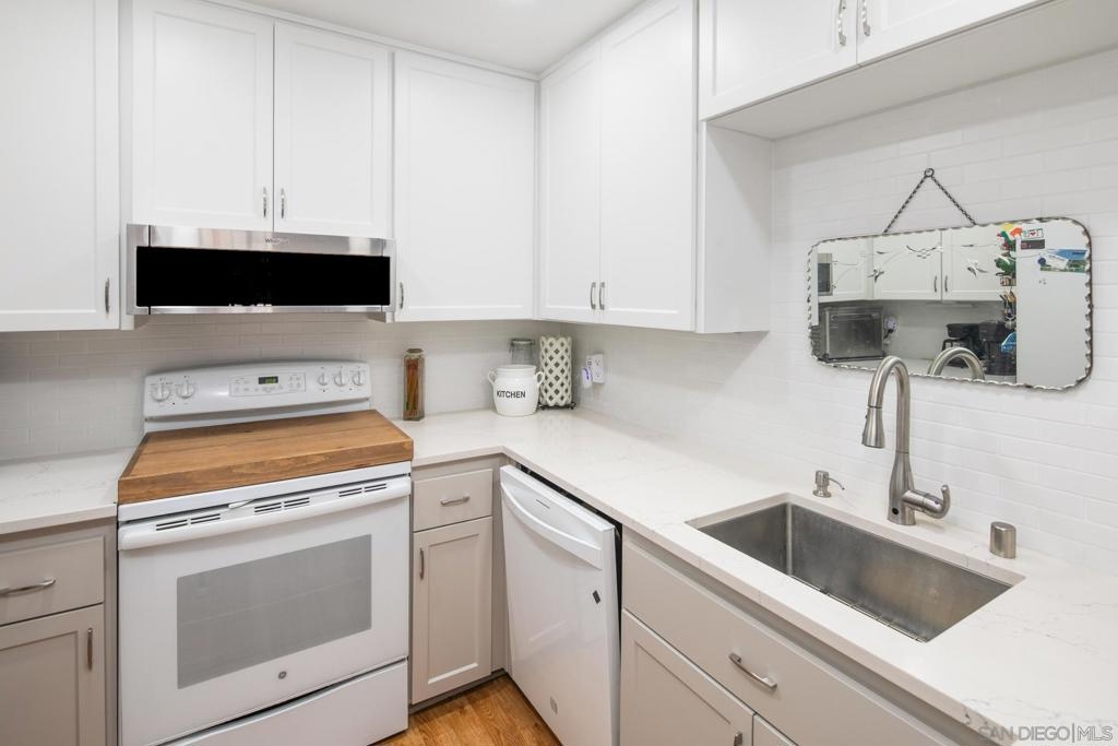 Experience elevated living in this stunning CORNER END unit at Mission Ridge, Mission Valley! This bright and airy 1 bed/1.5 bath condo features a spacious open floor plan and a fully upgraded kitchen with quartz countertops, custom cabinets and modern fixtures. The southeast-facing unit is bathed in natural light, with peaceful views and a tranquil setting. With new windows, elegant window shutters, and a newer air conditioning unit, this condo combines comfort and style. The generously sized bedroom includes an en-suite bath, while the convenience of in-unit washer/dryer hookups, along with an upgraded electrical panel, central A/C, and a prime location near elevators and mailboxes make daily living a breeze. Just steps from resort-style amenities including a pool, spa, racquetball court, 2 tennis courts and a gym, this home offers both luxury and convenience. Mission Ridge is a beautifully maintained complex offering a large pool, spa, dog park and dog stations, 2 tennis courts, saunas, racquetball court, gym, and clubhouse. The location is unbeatable with easy access to multiple freeways, the trolley and is only about a 15 minute drive to downtown San Diego, the airport, SeaWorld, the beaches and the bays. Enjoy being close to Snapdragon Stadium, SDSU, and the vibrant shopping and dining of Mission Valley. With easy commutes to practically anywhere in the city, this condo offers the ultimate blend of convenience and leisure. The HOA covers water, trash, and includes resurfaced streets, new exterior painting and secure Amazon delivery cubbies in the Lobbies. This unit has 1 parking space with extra (approved) storage cabinets that many units do not, another parking space may be possibly acquired through the HOA if available. Don’t miss out on this prime opportunity for comfortable, convenient living in one of the best locations in the complex. All offers considered.