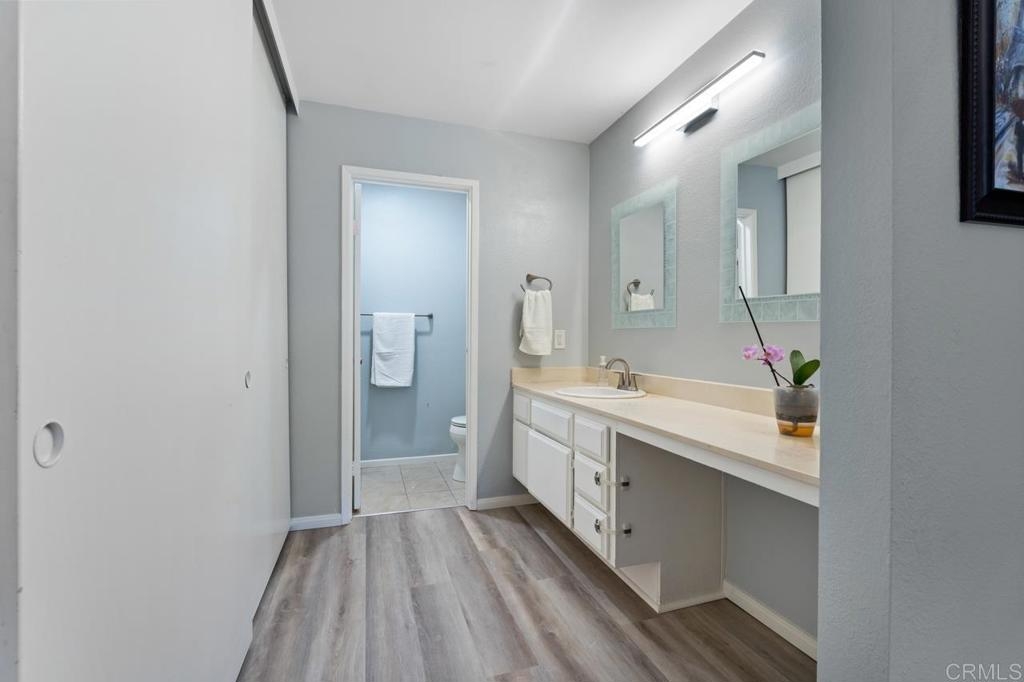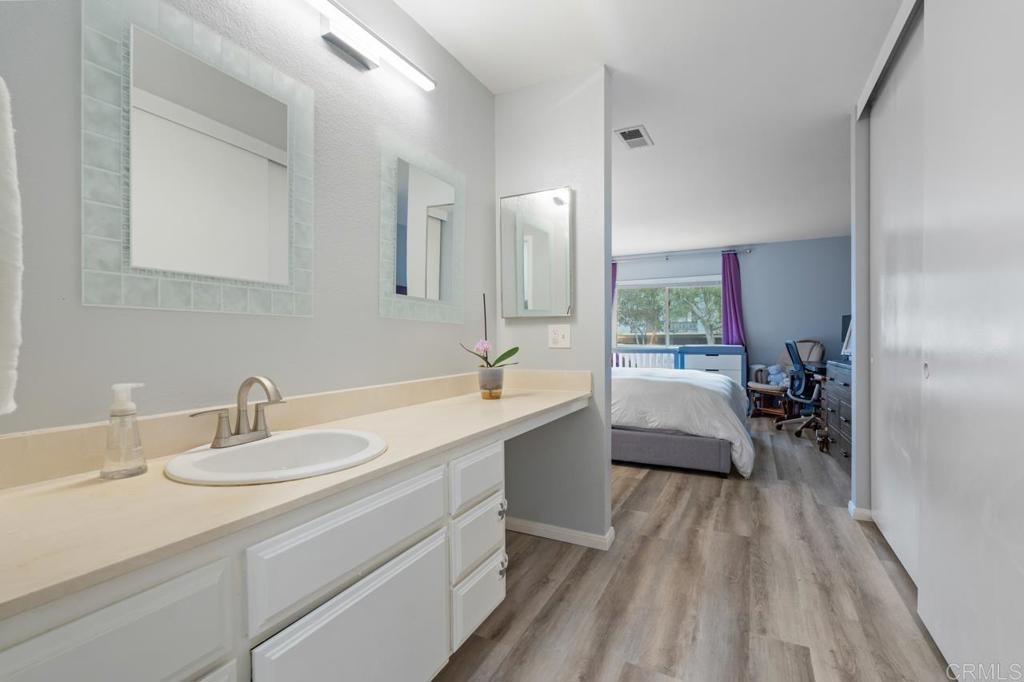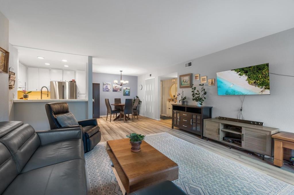 SOLD! FHA & VA approved! Spacious 2 bedroom & 2 bath Mission Ridge condo in Mission Valley. This home features an open floor plan with a huge primary bedroom including an en-suite bath, new LVP flooring, new Anderson windows ($6000) in the bedrooms, new stainless steel appliances, an enclosed patio, central air/heat, and in-unit washer/dryer combo hookups. Adjacent to the community pool & the other resort-like amenities, Mission Ridge features a pool, spa, dog park, 2 tennis courts, 2 saunas, a racquetball court, a gym & clubhouse! Conveniently located close to the stadium, restaurants, shopping, & multiple freeways making all of San Diego super easy! 1 assigned parking space in the carport with double the storage compared to most and 1 additional parking pass. HOA includes trash and water!