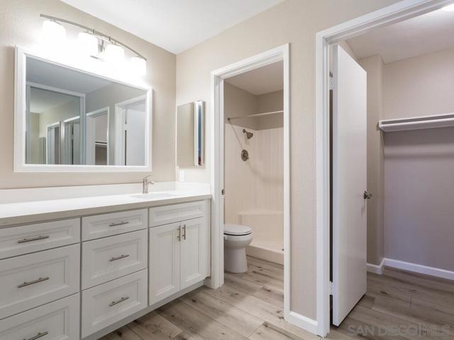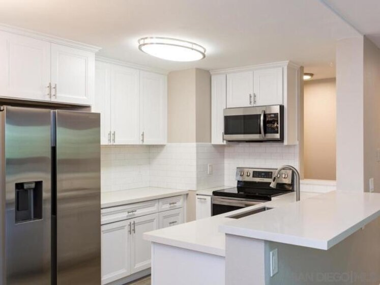 This is a beautifully remodeled two-bedroom, two-bath condo in Mission Valley. The property features a remodeled kitchen with updated cabinets, quartz countertops, stainless steel appliances, remodeled bathrooms, and luxury flooring. The primary bedroom has two closets: a walk-in and a private patio with a greenspace view. Parking is below, and the elevator takes you to the entry, so there are no steps. Mission Ridge is one of the finest communities in Mission Valley. It features incredible community grounds, including a fantastic pool, spa, racquetball and tennis courts, community facilities, and more. Parking deeded spot covered #159, second parking is a permit for an open space, buyer gets from HOA.