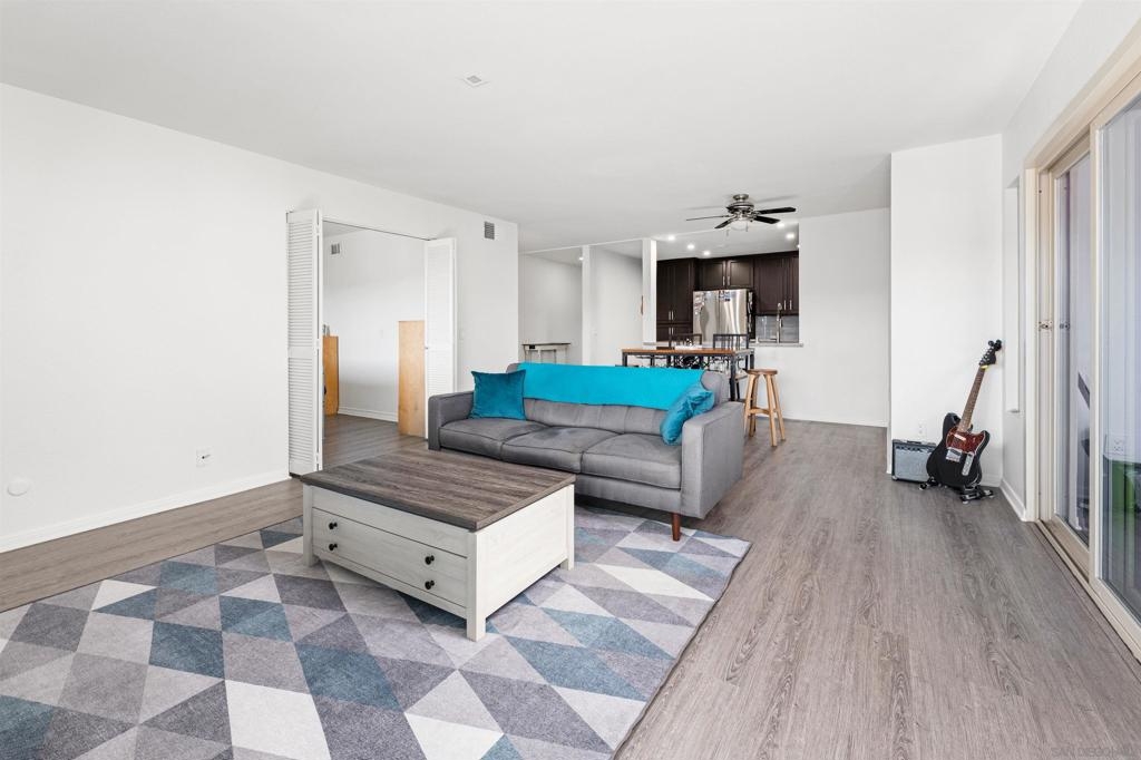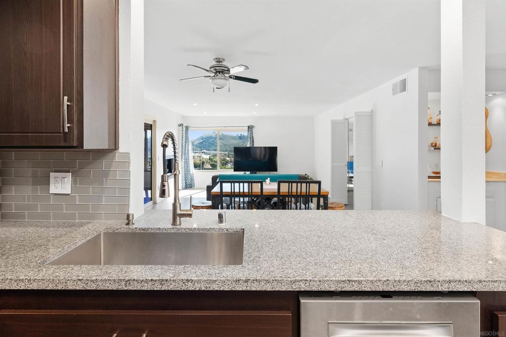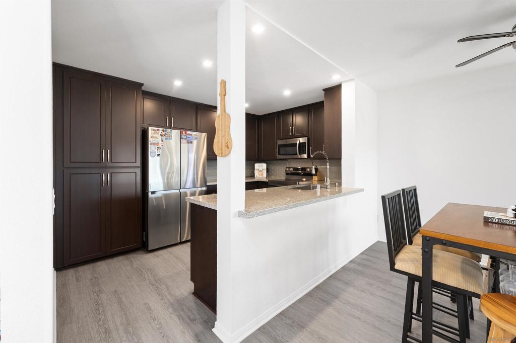 Enjoy amazing views from this centrally located Mission Valley end-unit condo perched above Snapdragon Stadium. This 2BD/2BA home offers over 1,150 sq ft with an open layout, spacious primary suite, and large secondary room perfect for an office or guest space, and in-unit laundry. The kitchen features stainless-steel appliances, and the unit even comes with a wet bar, ideal for entertaining. The community offers resort-style amenities including a pool, spa, gym, tennis courts, and dog run.