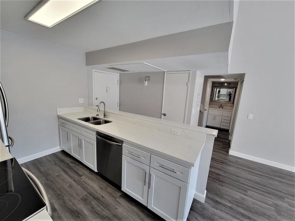 Completely remodeled 2 bedroom 1 1/4 bath condo is move-in ready with many upgrades. Kitchen has stainless steel appliances, quartz counter tops, deep sink with new faucet. The home has been completely custom painted with all new flooring and light fixture thru out. Panoramic views from balcony and assigned parking A MUST SEE Sewer: Public Sewer