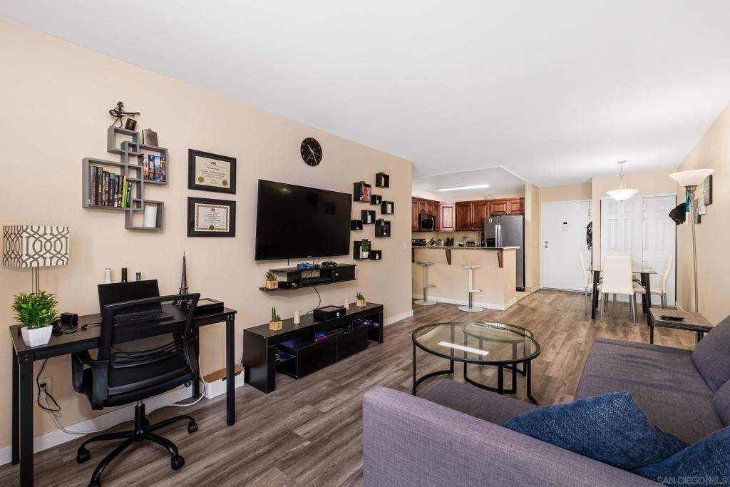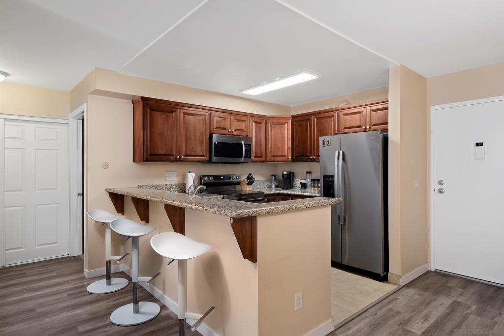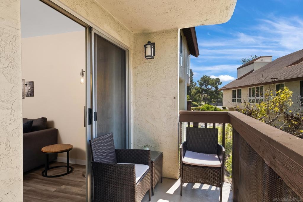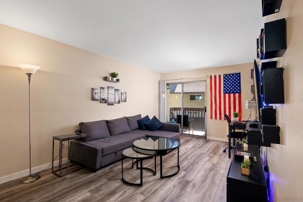 Charming 1-bedroom, 1-bathroom condo in the Mission Verde complex, conveniently located in Mission Valley. This second floor unit boasts new laminate flooring and the upgraded kitchen features new stainless steel appliances. This spacious unit offers plenty of storage options - two closets in the unit plus a large sliding closet in the bedroom. The private balcony, just off the living room, also offers an additional storage locker and beautiful views. The Mission Verde complex amenities include a swimming pool, picnic and BBQ areas, and tennis and basketball courts. For easy unit access, there are elevators (the building has 3 levels) and three difference entrances/exits to the building. There is a larger community laundry in the complex as well as a smaller laundry room in the building. One assigned parking spot and one optional additional parking pass for residents to park on a 1st come 1st served basis. This condo is just moments away from a variety of shopping, dining, and entertainment options, with easy access to major freeways.