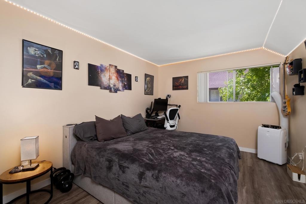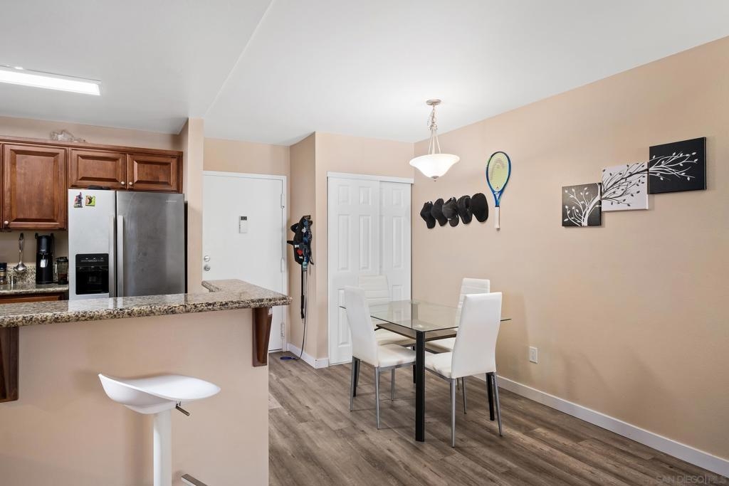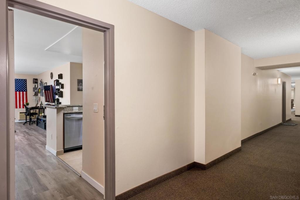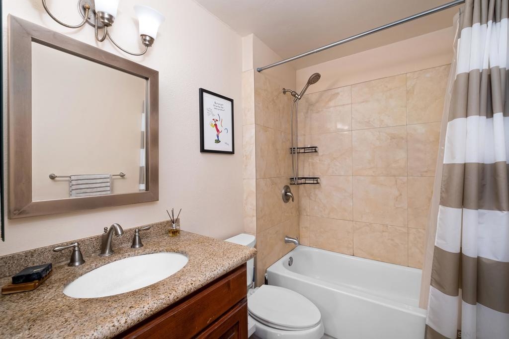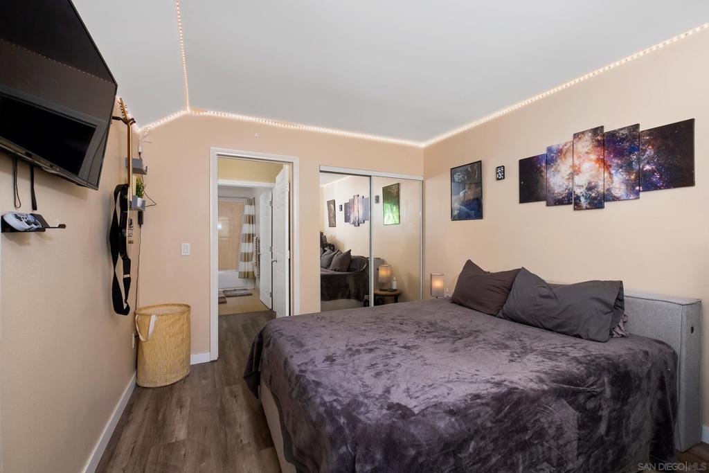 Charming 1-bedroom, 1-bathroom condo in the Mission Verde complex, conveniently located in Mission Valley. This second floor unit boasts new laminate flooring and the upgraded kitchen features new stainless steel appliances. This spacious unit offers plenty of storage options - two closets in the unit plus a large sliding closet in the bedroom. The private balcony, just off the living room, also offers an additional storage locker and beautiful views. The Mission Verde complex amenities include a swimming pool, picnic and BBQ areas, and tennis and basketball courts. For easy unit access, there are elevators (the building has 3 levels) and three difference entrances/exits to the building. There is a larger community laundry in the complex as well as a smaller laundry room in the building. One assigned parking spot and one optional additional parking pass for residents to park on a 1st come 1st served basis. This condo is just moments away from a variety of shopping, dining, and entertainment options, with easy access to major freeways.