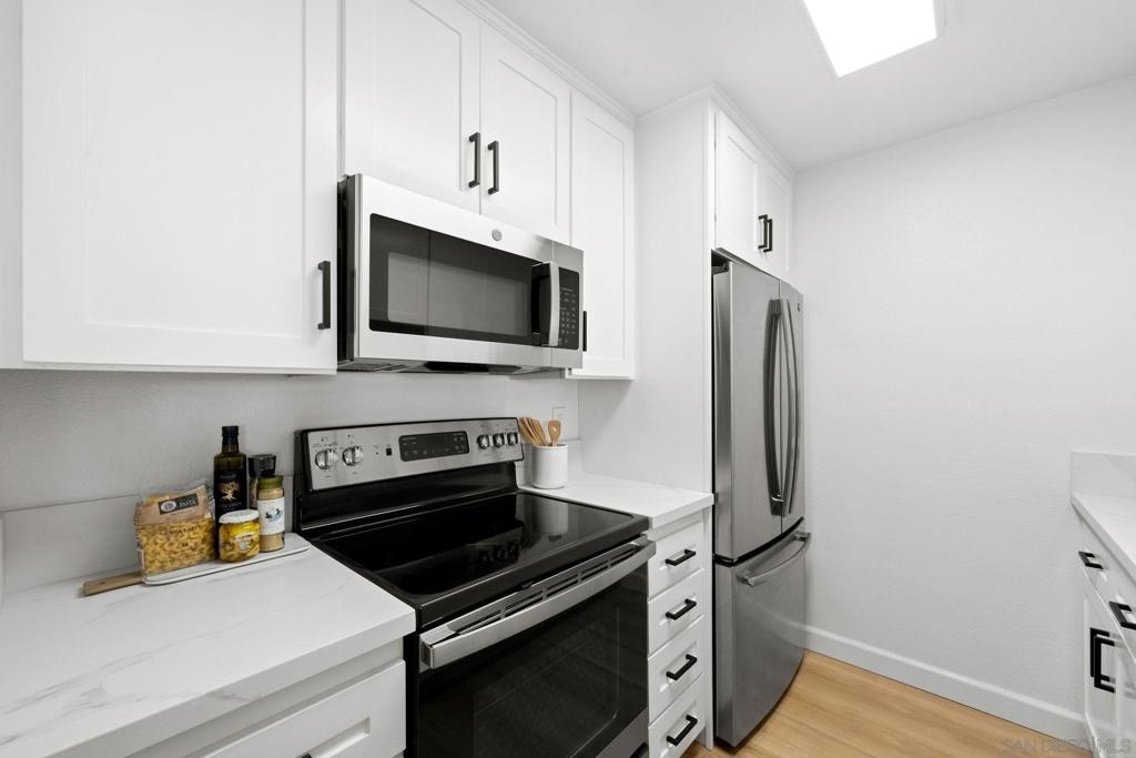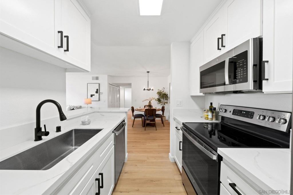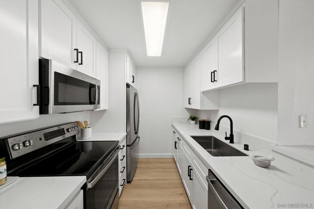 Rarely available remodeled condo located in the Mission Verde complex of Mission Valley. This light and bright unit includes central AC and has just been completely renovated with new LVP flooring, remodeled kitchen and baths, and much more. Enjoy your large, private balcony with views of the open space and greenery. Two parking spaces are included with one being a covered space with your own storage closet. Located close to shopping, restaurants, and a short drive to the beach.