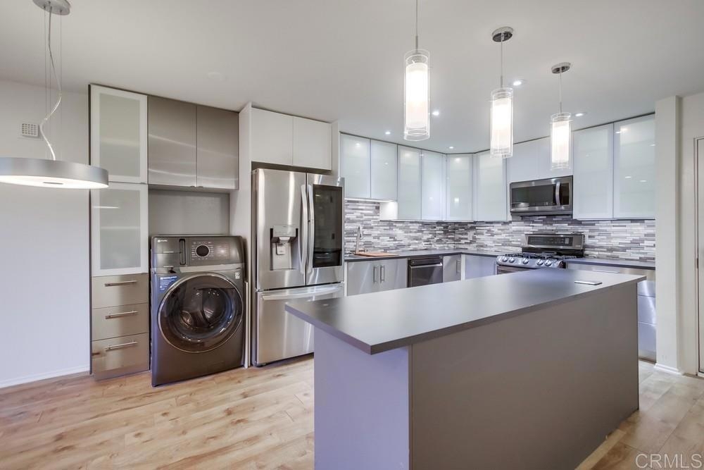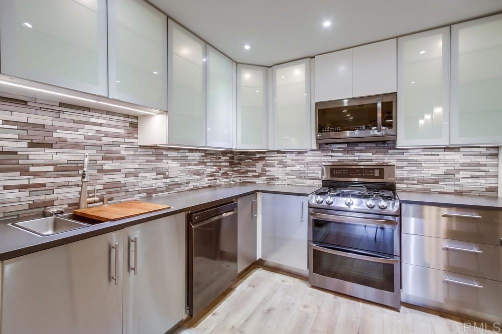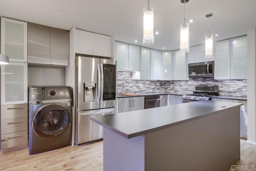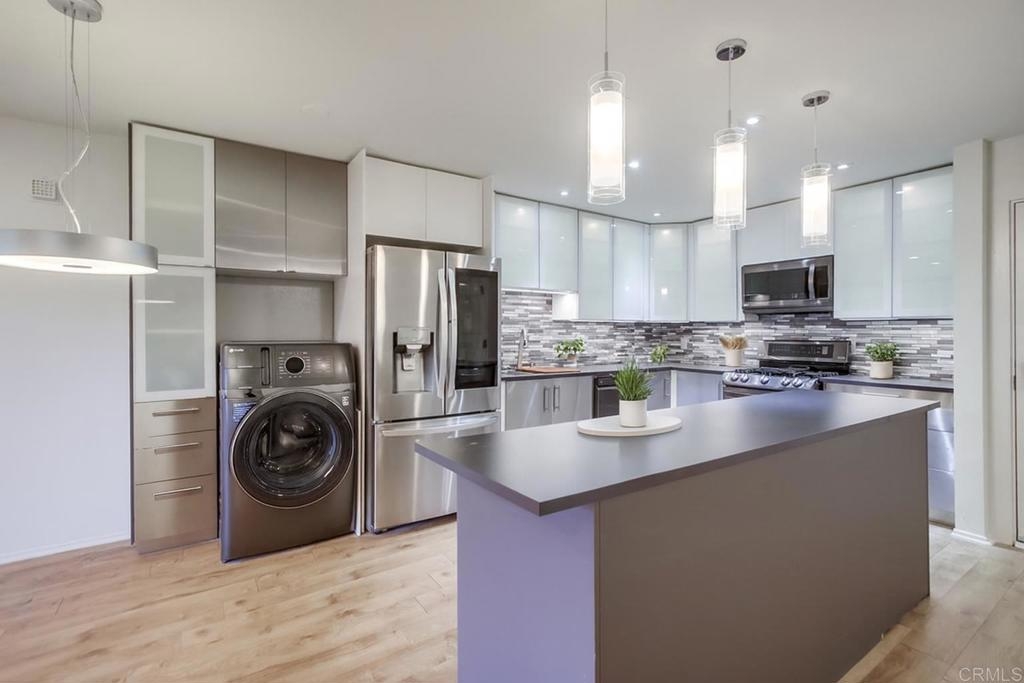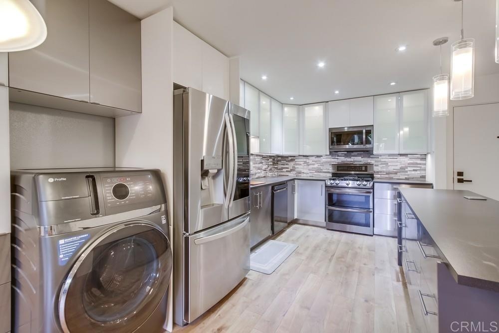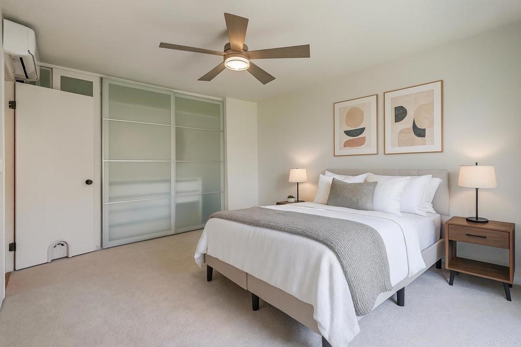 Remodeled corner unit with rare dual balconies overlooking the pool and tranquil river fountain. This beautifully updated home features a chef’s kitchen with premium finishes, in-unit laundry, and mini-split AC systems in every room for year-round comfort. The spacious primary suite includes a custom-built-in closet and a large private bathroom. Enjoy resort-style living in a light-filled layout with views from every angle. The unit includes an assigned garage parking space equipped with EV charging. The well-maintained community offers a pool, spa, clubhouse, billiards room, gym, sauna, basketball court, pickleball court, tennis court, dog run, and outdoor barbecues. Located in the heart of Mission Valley, this turnkey condo offers easy access to shopping, dining, freeways, and the beach.