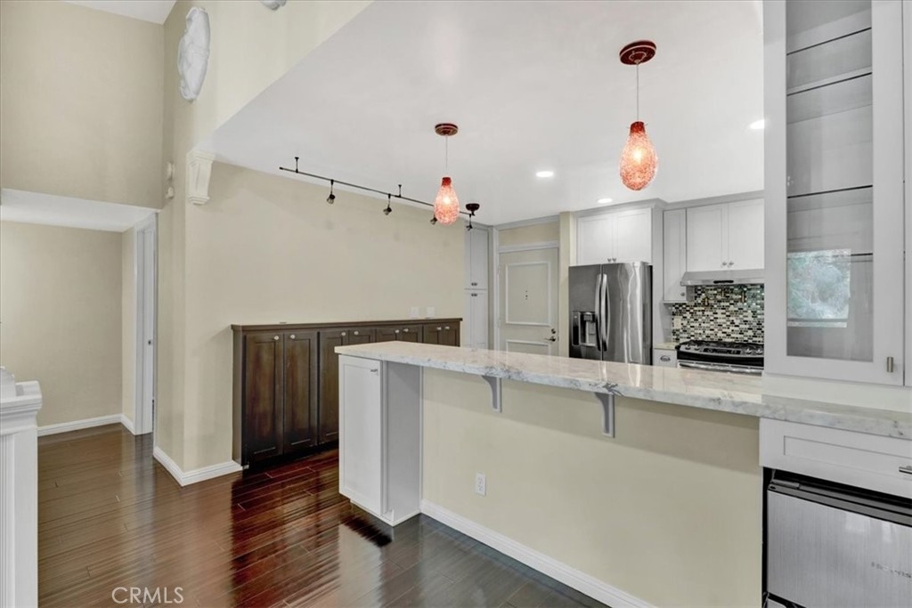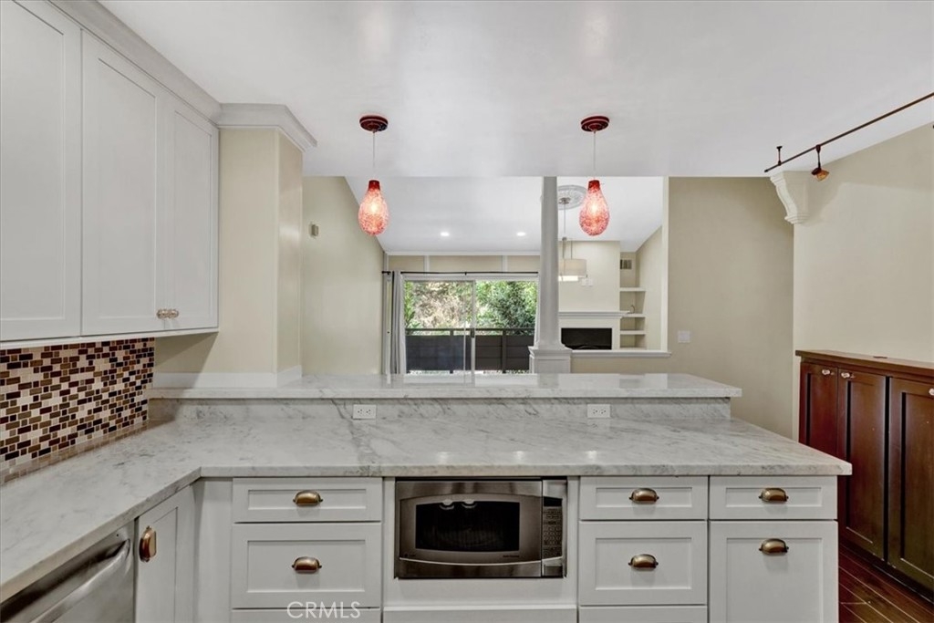 Welcome to this exquisite condo offering the perfect blend of comfort, style, and convenience, located in the Mission Valley area of San Diego. This end unit features 2 bedrooms, 2 bathrooms, and two balconies—one off the living room and another off the primary bedroom. The living area is open and bright, with a beautiful medallion around the light fixture and a cozy fireplace ideal for relaxation. Adjacent to the living room, the balcony provides a perfect spot for morning coffee or unwinding in the evening. The kitchen is designed for both functionality and elegance, boasting ample cabinet and counter space with stunning marble countertops and backsplash. It is equipped with high-end stainless steel appliances, including a refrigerator, microwave, gas range, and dishwasher. A wall-mount pot filler faucet adds extra convenience for cooking enthusiasts. Additionally, a bar area with a refrigerator and cabinets is located at the end of the kitchen counter. The primary bedroom features an additional balcony, complete with a storage shed and a privacy shade that can be pulled up or down, providing a perfect retreat for relaxation. Amenities include: Underground parking with an EV charging unit for this condo, Fitness gym, Sauna, Laundry area, BBQ area, Recreation room with pool tables, Swimming pool and spa, Tennis courts. This condo offers easy access to local amenities, beaches, the airport, shopping, dining, and entertainment options in Mission Valley and the greater San Diego area.