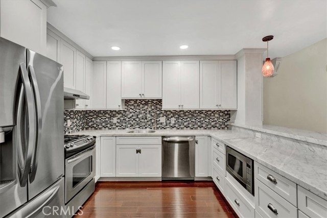 Welcome to this exquisite condo offering the perfect blend of comfort, style, and convenience, located in the Mission Valley area of San Diego. This end unit features 2 bedrooms, 2 bathrooms, and two balconies—one off the living room and another off the primary bedroom. The living area is open and bright, with a beautiful medallion around the light fixture and a cozy fireplace ideal for relaxation. Adjacent to the living room, the balcony provides a perfect spot for morning coffee or unwinding in the evening. The kitchen is designed for both functionality and elegance, boasting ample cabinet and counter space with stunning marble countertops and backsplash. It is equipped with high-end stainless steel appliances, including a refrigerator, microwave, gas range, and dishwasher. A wall-mount pot filler faucet adds extra convenience for cooking enthusiasts. Additionally, a bar area with a refrigerator and cabinets is located at the end of the kitchen counter. The primary bedroom features an additional balcony, complete with a storage shed and a privacy shade that can be pulled up or down, providing a perfect retreat for relaxation. Amenities include: Underground parking with an EV charging unit for this condo, Fitness gym, Sauna, Laundry area, BBQ area, Recreation room with pool tables, Swimming pool and spa, Tennis courts. This condo offers easy access to local amenities, beaches, the airport, shopping, dining, and entertainment options in Mission Valley and the greater San Diego area.