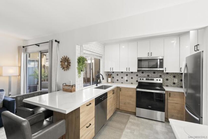 Welcome to your private retreat in one of San Diego’s most centrally located communities. Thoughtfully designed for both comfort and functionality, this inviting 1 bedroom home features a spacious bonus room ideal for a home office, guest space, creative studio, or fitness area — offering the flexibility to suit your lifestyle. The open-concept layout creates a seamless connection between the kitchen, dining, and living areas, delivering an effortless blend of style and convenience. Modern finishes enhance the home throughout, while the kitchen stands out with sleek quartz countertops, custom cabinetry, designer tile, an additional storage closet, and a charming coffee bar that combines visual appeal with practical use. Residents enjoy access to desirable amenities including two sparkling pools, a clubhouse, pet stations, multiple laundry rooms, and BBQ areas perfect for entertaining. Truly a must see!