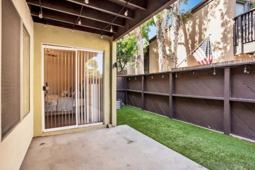 Mission Valley living at its best, in this breathtaking large, clean, recently remodeled, 1BR/1BA in the gated community of Park Villas North. Large Master Bedroom with an accessory den that can be used as a second room or office. Sliding glass doors that open out onto a private balcony with a private spacious backyard. Backyard fitted with new pet and child grade turf for a beautiful play space making it a beautiful and low maintenance outdoor area. Assigned parking space #160 in covered port footsteps away from front door. Community amenities include 2 pools/spas, recreation rooms, laundry room and new BBQ grills. Excellent location in central San Diego minutes from Downtown, Little Italy, Hill Crest, major freeway entrances, public transportation, trolley, Fashion Valley Mall, restaurants and more. Water and trash included. Amazing opportunity for a starter home! Must see! Sewer: Sewer Available