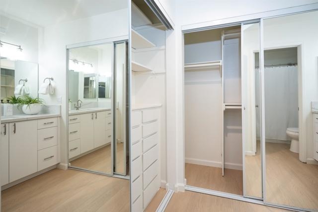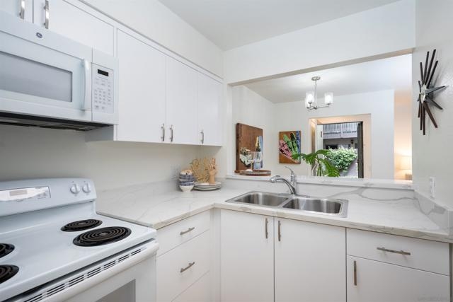 This adorable studio condo is located in the quiet rear of the complex, and in the heart of Mission Valley. This studio is ideal for a student, professional or as an investment. Boasting almost new everything – custom cabinets in kitchen and bath with soft-closing drawers/cupboards, quartz countertops, light fixtures, vinyl plank flooring and fresh paint throughout! The Park Villas North is nestled amidst a park-like setting at the end of a quiet cul-de-sac. It’s an oasis in the heart of Mission Valley. A large slider window opens to a private patio that is partially enclosed for privacy but allows cool breezes to flow. Park Villas North is an established community with mature landscaping, trees, quiet walkways, flowing fountains and friendly neighbors. It is a pet friendly community with two inviting pools and spas. Adjacent to Park Villas North is the San Diego River, an ideal place to take a morning or evening stroll or an easy bike ride. Mission Valley offers world class restaurants, a multitude of shopping centers, and lovely hotels making it one of the hottest areas in San Diego County. Major malls and smaller shopping centers are all within walking or biking distance from Park Villas North and within 15-minutes to downtown, the beach and business districts. Located close to all major freeways in San Diego and the San Diego Trolley has two stops that are just steps away from our door. The trolley provides convenient and effortless regional transit from Mission Valley to all parts of San Diego, making Park Villas North an ideal place to call “Home Sweet Home.”