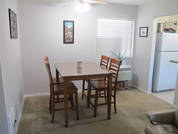 Private, bright upstairs unit with 1 covered parking spot, newer windows, newer blinds, granite counter tops in the kitchen, and a spacious balcony overlooking the ground's park-like views. Possible configuration to create a 2nd bedroom. Newer mirrored closet doors in the bedroom and newer hallway closet doors. Gated community which is located in a cul-de-sac, and is walking distance to the Green-Line Trolley to downtown. Close to Mission Valley Mall and restaurants. Neighborhoods: Park Villas North Complex Features: ,,,,, Other Fees: 0 Sewer: Sewer Connected, Public Sewer Topography: LL