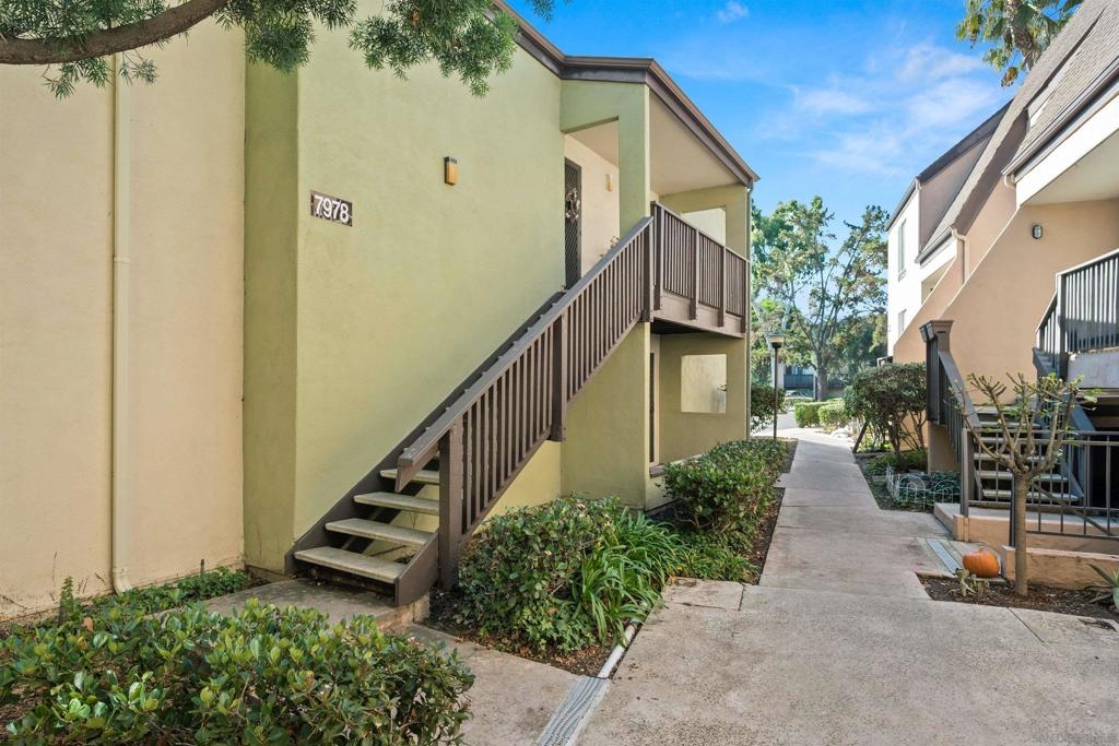 Quiet & private upstairs studio in sought after Park Villas North! bit of elbow grease, will become a great unit. Parking spot is close . Laundry, pool and trash very conveniently located as well. Centrally located within Mission Valley, but a very quiet location for the unit. Perfect property for first time Buyer or savvy investor. FHA & VA approved