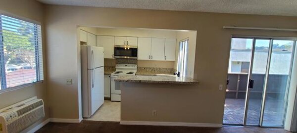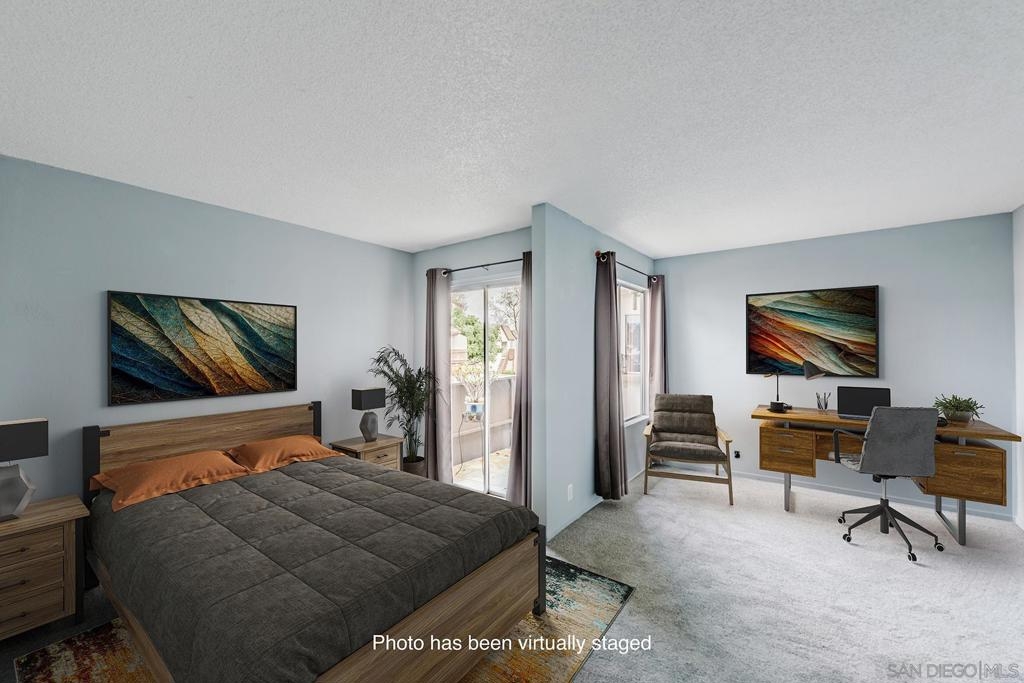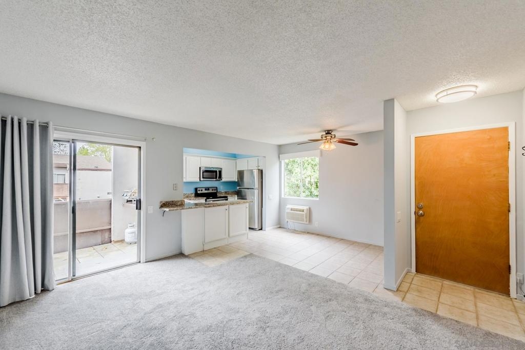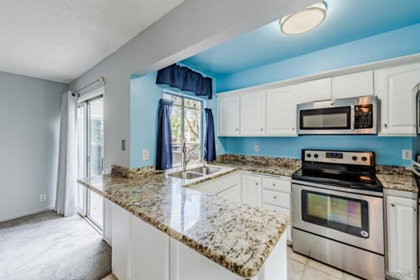 VA APPROVED! Light and bright 2nd floor 1bd, 1ba end unit in the gated Park Villas South Community! The open concept living, dining, and kitchen has slider doors to a nicely-sized balcony with sunset color and sky/treed views. The unit has fresh paint, newer carpet (2/5/24), large closet space, Reverse Osmosis (RO) unit in the kitchen sink, and granite counters. The large L-shaped bedroom has a privacy sound-dampening wall and an additional area that can be a great home office, exercise space, or a nice sitting area. The community has direct access to the San Diego River Trail, is close to parks, shopping, dining and all that Mission Valley has to offer! Near Friars Rd, 8 and 163 freeways; minutes to the beaches; close to transit and trolley stop. Do not miss your chance to see this condo!