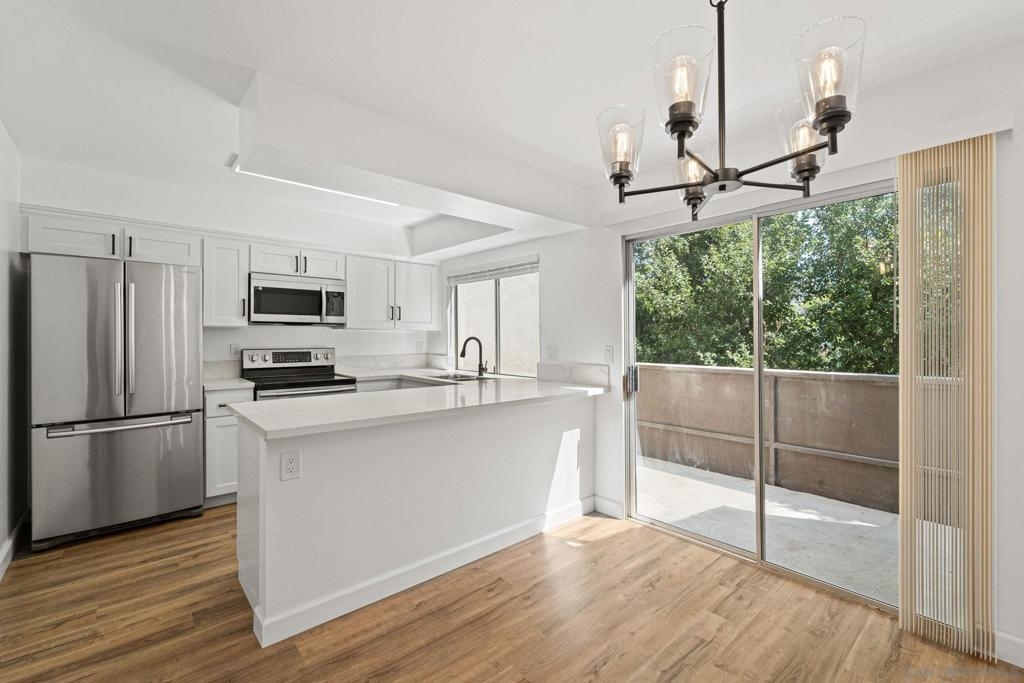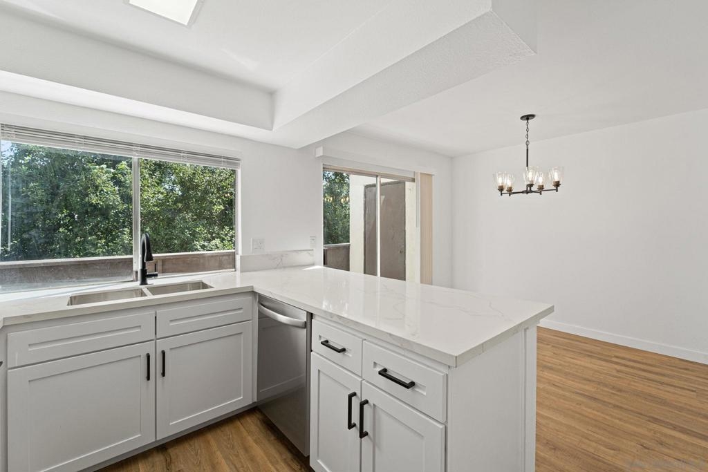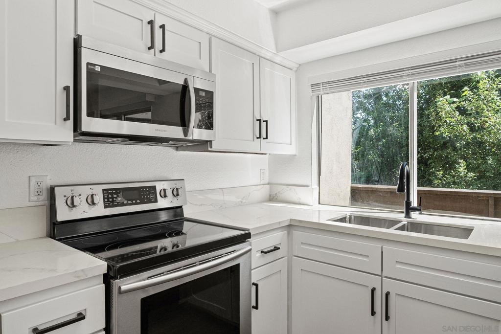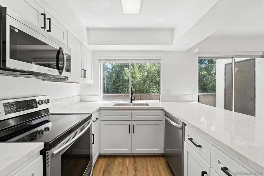 Completely remodeled townhome style condo overlooking the San Diego River in Mission Valley. All new luxury vinyl plank flooring, carpet, new kitchen and baths, quartz counters, designer fixtures, wall AC, and much more. Private location in the back of the complex with a deck overlooking the San Diego River. Complex features pool, spa, laundry and is located in central Mission Valley. 1 covered parking space included. Walk to shopping, restaurants, grocery stores, and a short drive to major freeways.