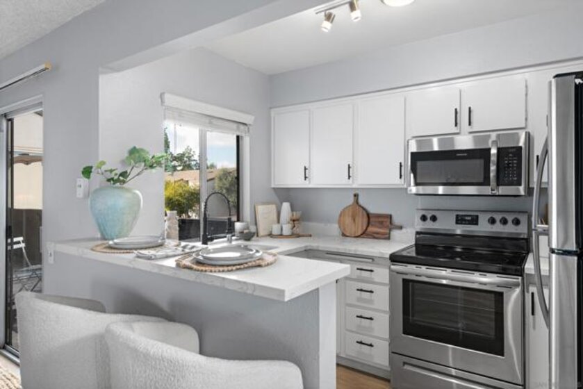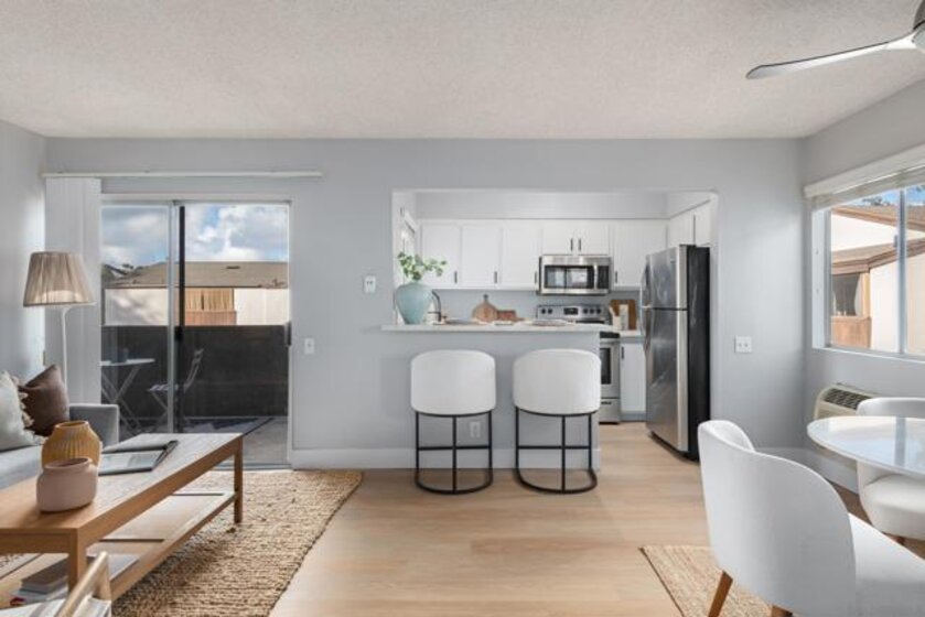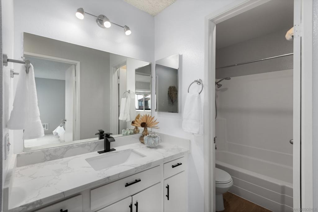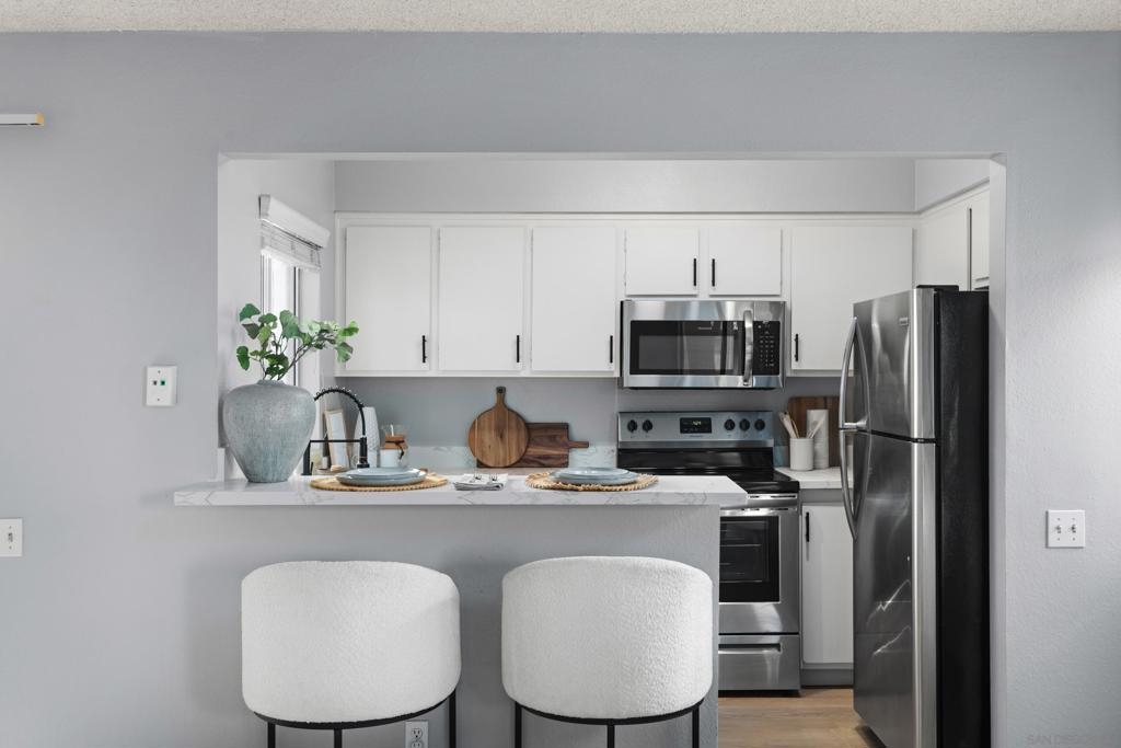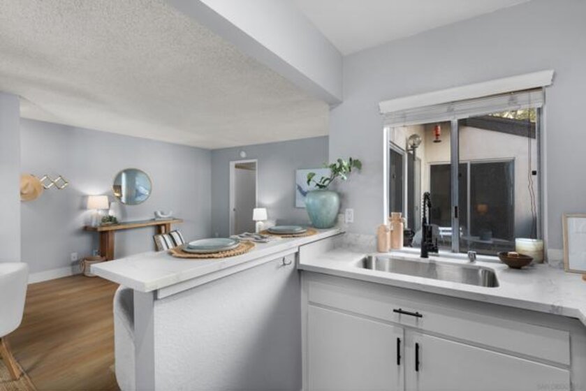 3.19% ASSUMABLE Interest Rate available! Save over $12,000 annually in mortgage payments as compared to market interest rates! This complex is also VA Approved! This completely remodeled Condo in the best location in Mission Valley is completely turn-key & move-in ready for you! Recent remodel includes: luxury vinyl plank flooring, new kitchen and quartz counters with stainless steel appliances and dishwasher, new bathroom counters and fixtures, additional custom fixtures, and more!! OVER-sized bedroom includes extra space for an office, or you can partition the room and turn it into two rooms. Secluded & fenced patio is great for entertaining. The complex has two pools, two spas, community laundry, and BBQ areas - EXTREMELY Pet Friendly. The BEST Central location near restaurants, shopping, downtown, and beaches!