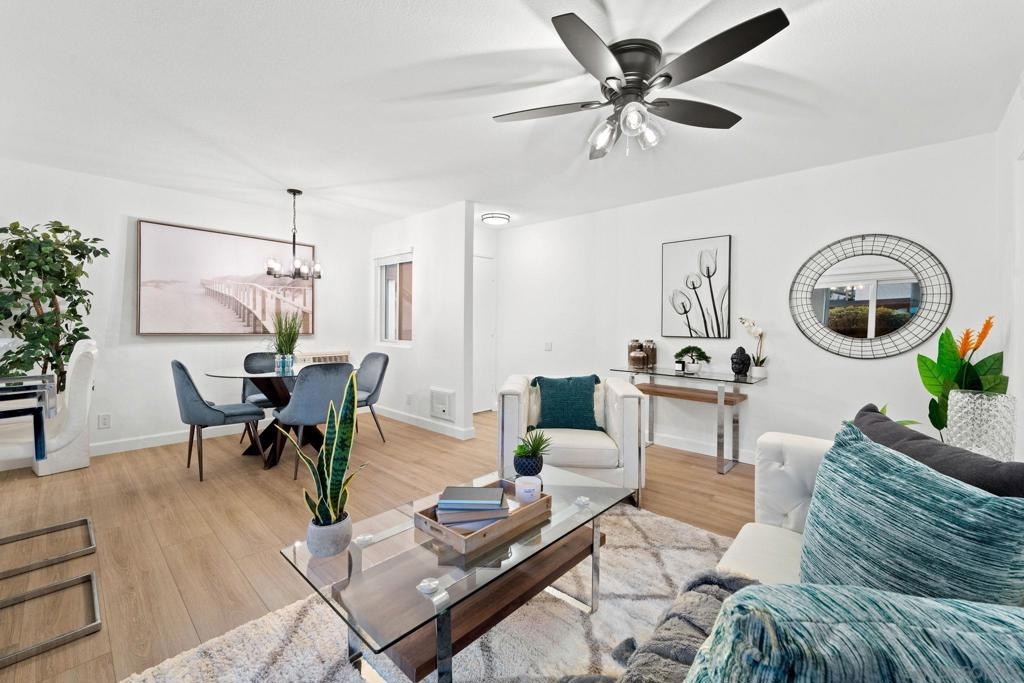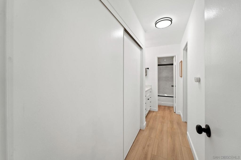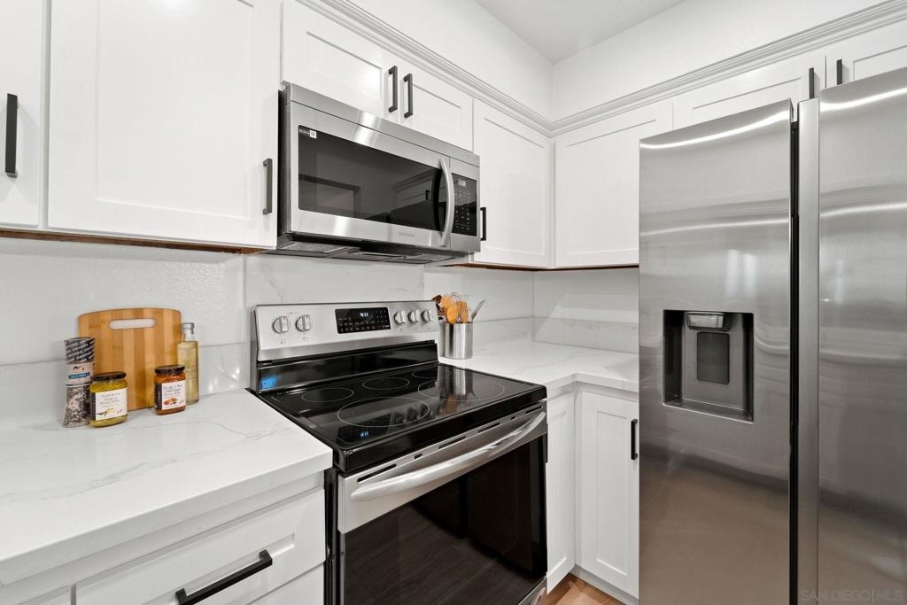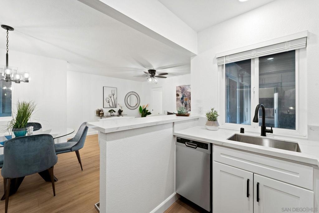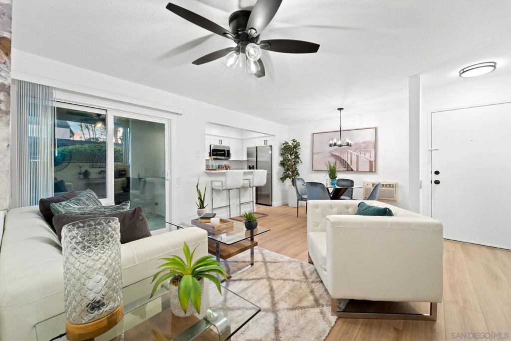 VA approved!! Completely remodeled Mission Valley condo is move-in ready with new luxury vinyl plank flooring, new kitchen with stainless steel appliances and dishwasher, quartz counters, custom fixtures, and more. Private fenced patio great for entertaining. Large bedroom includes extra space for an office or you can partition the room and turn it into two rooms. The complex has two pools, two spas, community laundry, and BBQ areas. Centrally located in near restaurants, shopping, downtown, and beaches.