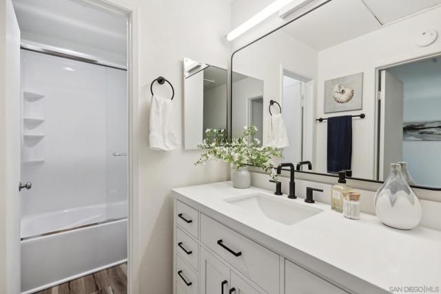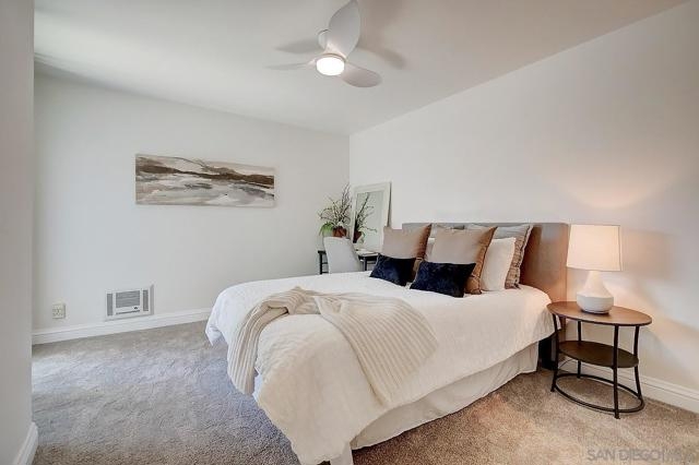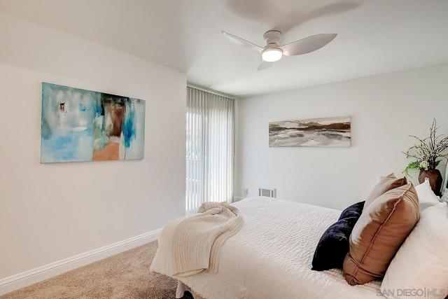 Turnkey, move-in ready, Park Villas South condo offers a convenient Mission Valley Location with easy access to shopping, restaurants, parks, freeways and so much more! Recently refreshed with new paint and carpet throughout, this light & bright upper level condo includes a living room, dining area plus a bonus office area! Access the spacious, covered balcony complete with a breakfast bar from both the living room and oversized bedroom. Enjoy both an updated kitchen with stainless appliances and a modern bath complete with a separate shower area. 1 gated parking space, additional parking may be rented. Ideal location within the complex with easy access to pool and amenities. Park Villas South offers low HOA fees, 2 pool areas, clubhouse and laundry facilities. Mission Valley offers an abundance of shopping centers, restaurants, entertainment, parks, walking trails and a superb central San Diego location with access to multiple freeways that will take you Downtown, the Beach Communities, SDSU or USD in a jiffy!