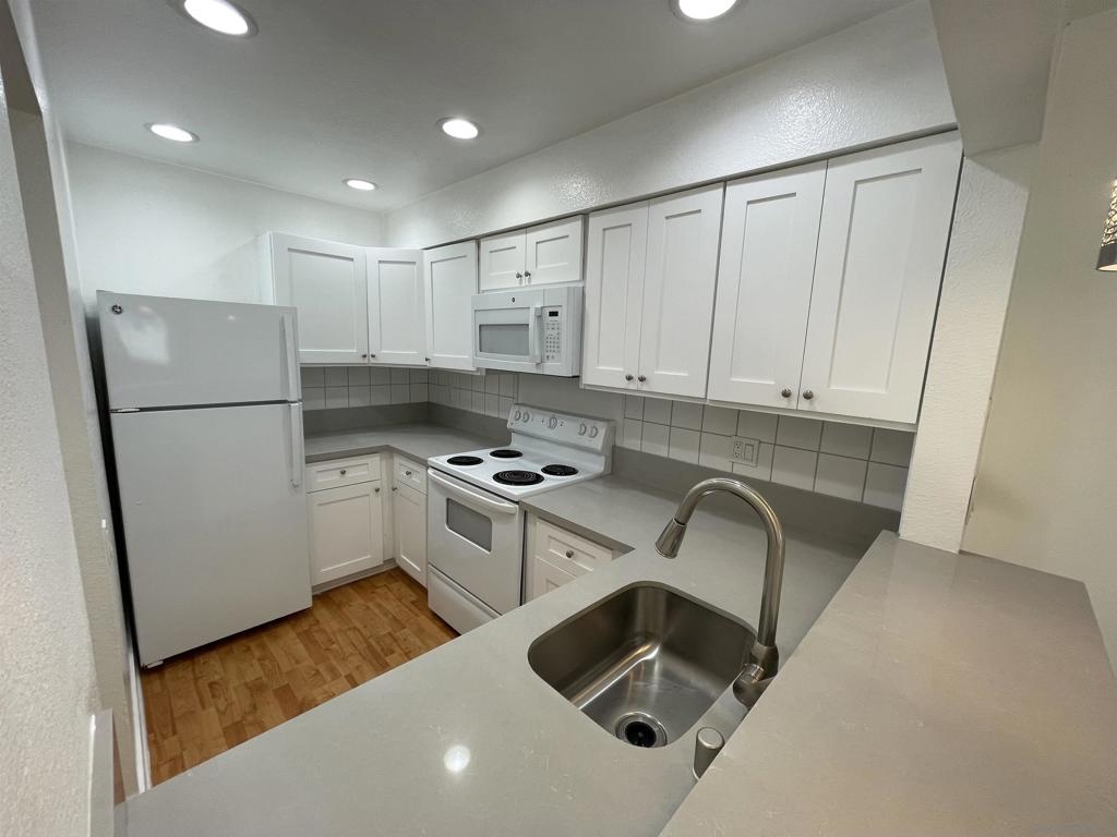 Beautifully remodeled top-floor studio in the heart of Mission Valley. The surprisingly spacious kitchen features quartz countertops, generous cabinetry, and a dishwasher. A dedicated dining area offers space for meals or a work zone. Two oversized closets provide excellent storage, and the large patio has already completed the balcony upgrade. Stay cool with the wall-mounted AC unit. Enjoy resort-style amenities such as pools, spas, BBQ areas, a clubhouse, and on-site laundry. One assigned covered parking space included. FHA and VA approved.