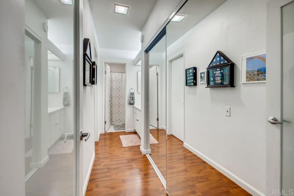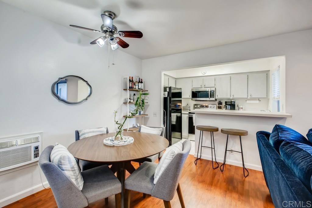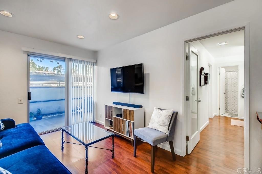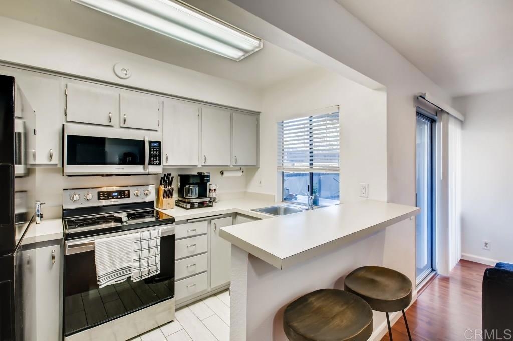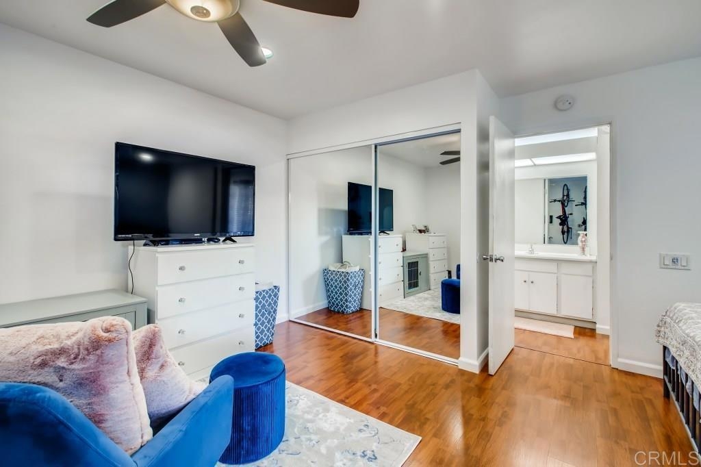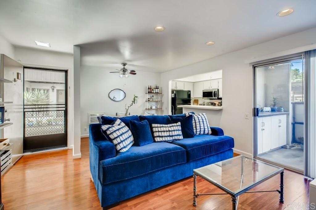 Fantastic location! Super cute, comfortable first floor 1BD/1BA condominium in Mission Valley. Fresh neutral paint throughout, neutral laminate hard surface wood flooring, new ceiling fans, updated led overhead lighting, wood shutters, new baseboards, new toilet, new fixtures in tub, awesome water pressure, newer stainless kitchen appliances, new cabinet door handles that compliment the nice, neutral kitchen cabinets which provide plenty of storage for your kitchen gadgets and small appliances, two generous closets/storage spaces, mirrored wardrobe doors, oversize master bedroom with plenty of space for a home office, workout/yoga area or better yet bring your Peloton bike and enjoy workouts from the privacy of your own home! Assigned parking. Wonderful outdoor patio off the family room for entertaining friends and family or just enjoying some quiet time relaxing with a glass of wine and some yummy appetizers after a day at work. Quiet complex has a private security arm for single car entry, excellent amenities including a plethora of park-like greenbelts, large pool, BBQ, ping pong tables, picnic area, pet friendly spaces, clean, generous common area laundry close to property. Shopping, entertainment , grocery, trolley, major freeways, restaurants and the mission valley river trail are all close by and round out this really GREAT opportunity for you to take advantage of the current low interest rates and own a home of your very own in San Diego! Come check it out!