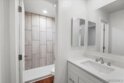 Welcome to your Mission Valley retreat! Step inside this bright and airy updated condo featuring an open floor plan, warm flooring, and a private outdoor patio—perfect for relaxing or entertaining. The living room opens seamlessly to the dining area and remodeled kitchen, complete with beautiful cabinetry, recessed lighting, and a breakfast bar ideal for morning coffee or casual meals. The primary suite offers direct patio access and a ceiling fan for year-round comfort. An optional second bedroom makes the perfect home office, nursery, or guest space. The modern bathroom features crisp white cabinetry and a sleek walk-in shower with tile accents. Outside your door, enjoy resort-style amenities—sparkling pool & spa, BBQ area, clubhouse, gated entry, and on-site laundry. One assigned covered parking space is included. Conveniently located just minutes from Fashion Valley, USD, the San Diego River Trail, and quick freeway access to Downtown and the beaches.